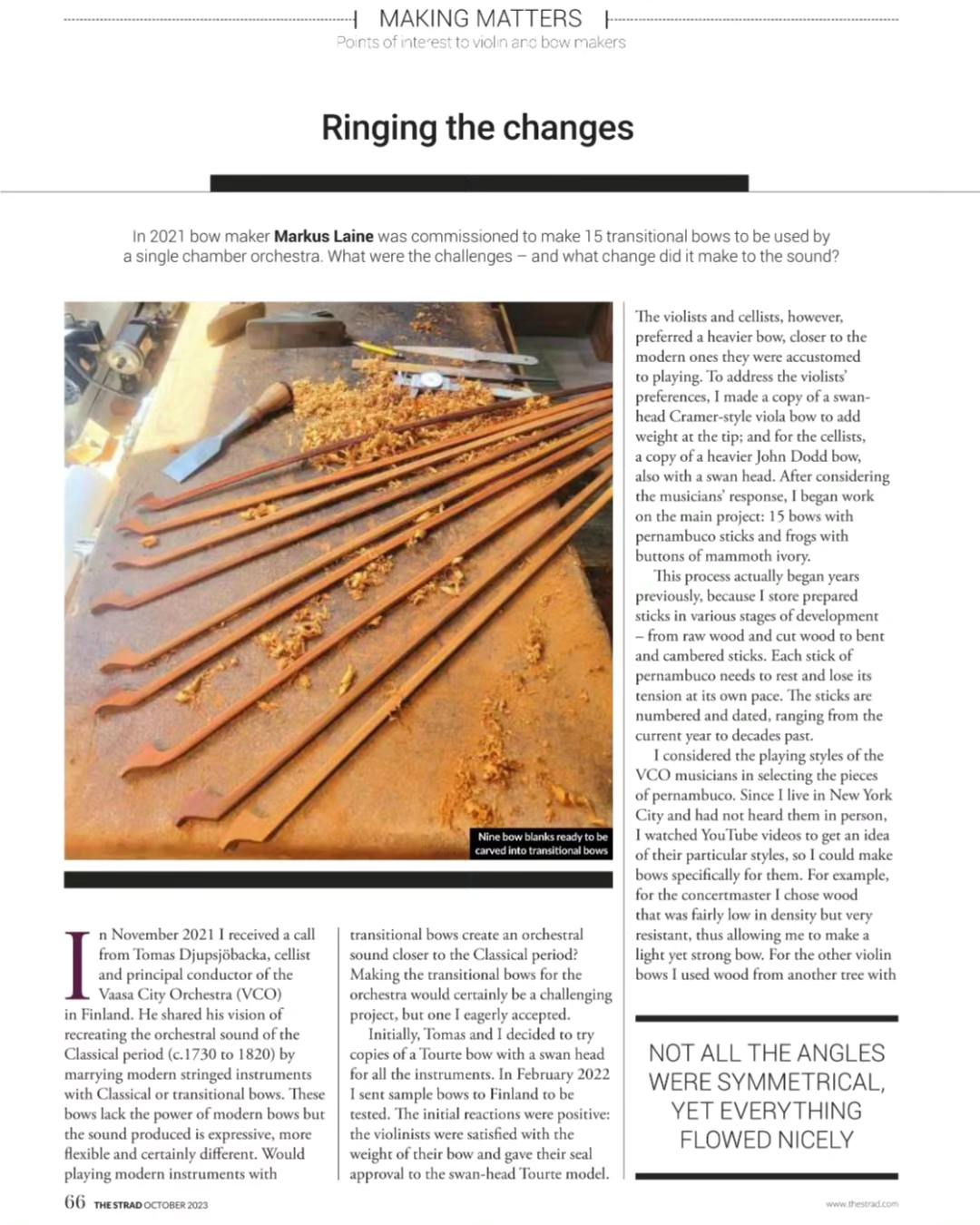 Kansainvälisesti tunnettu arvostettu klassisen musiikin ja jousisoittajien ammattilehti The Strad julkaisi perjantaina 15.9.2023 ilmestyneessä lokakuun julkaisussaan artikkelin Vaasan kaupunginorkesterin klassisista jousista. Artikkeliin kuuluu myös soivaa materiaalia Vaasan kaupunginorkesterin syyskauden avajaiskonsertista 7.9.2023.