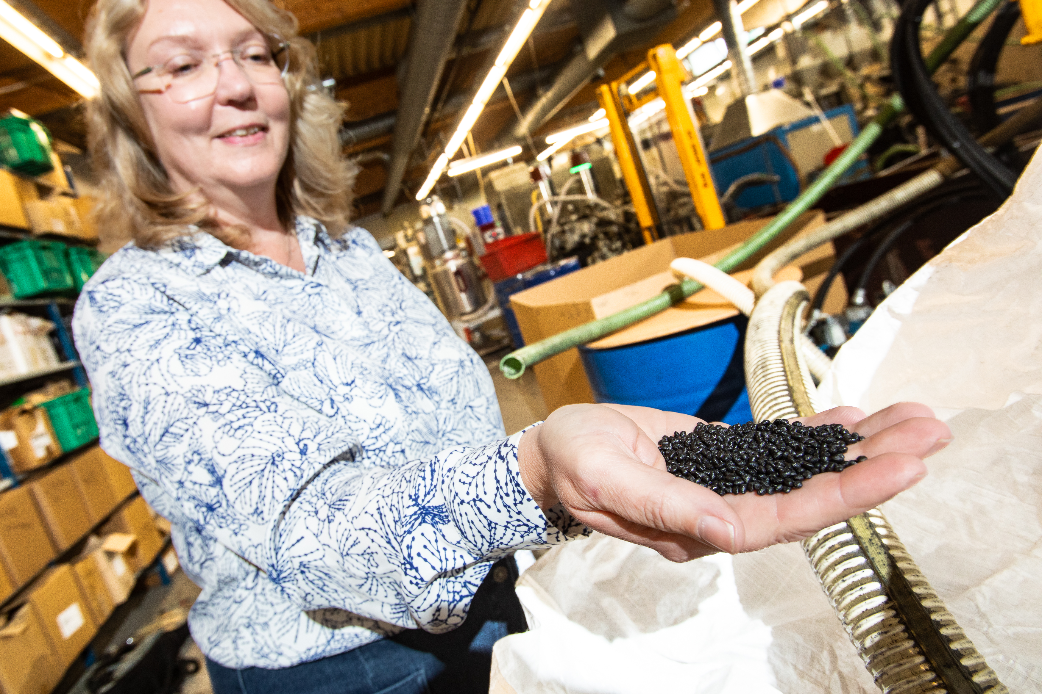 ”Suomen Rengaskierrätys ja sen tutkimuskumppani Apila Oy olivat kuitenkin tehneet niin hyvän pohjatyön ja testanneet sen soveltuvuutta ruiskuvaluun, että oli helppoa lähteä kokeilemaan”, Mäkilouko sanoo.