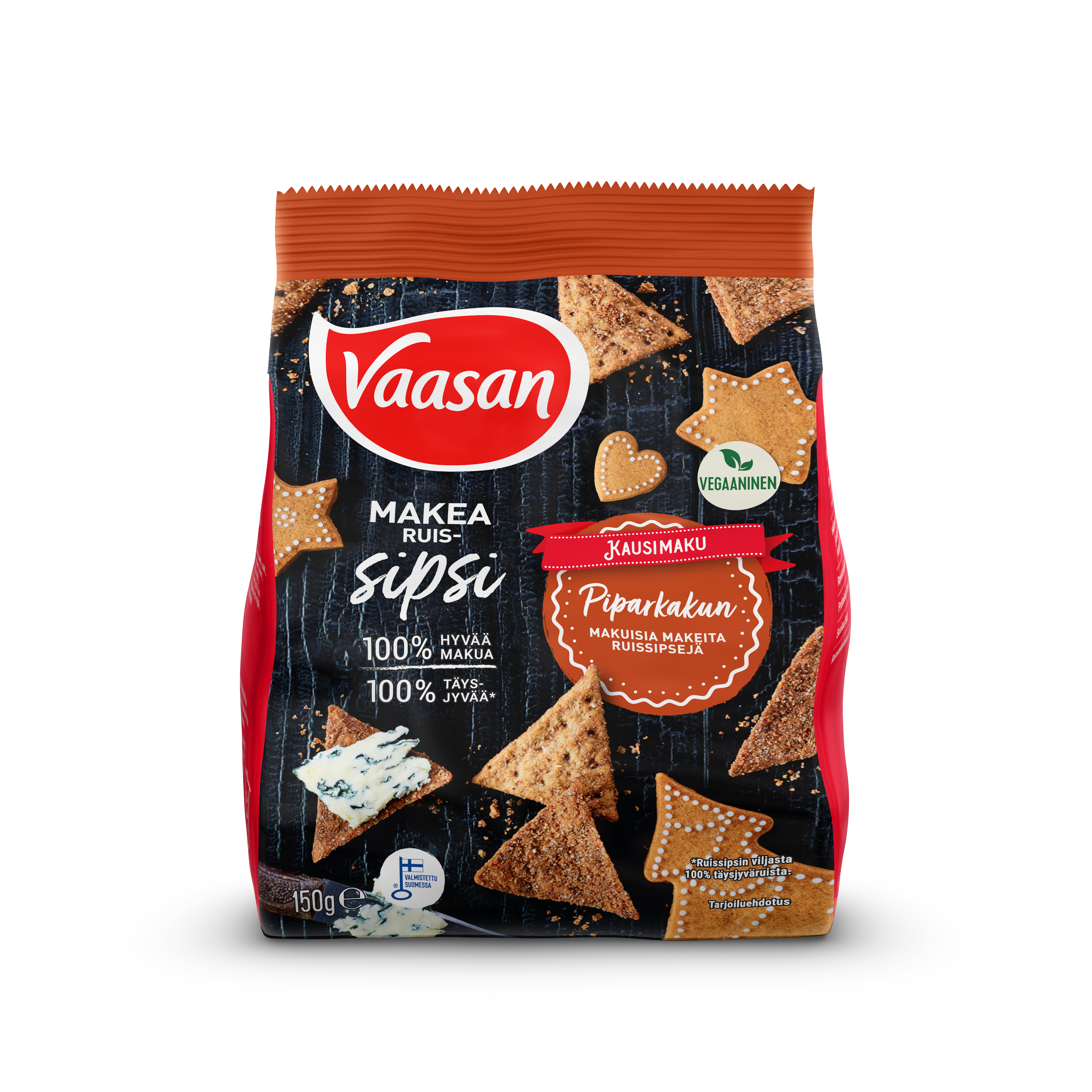 Piparkakun makuiset ruissipsit löytyvät kauppojen hyllyiltä. Tutustu myös muihin Vaasan ruissipsimakuihin tästä.