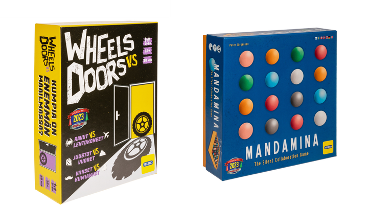 Mandamina -pelin löydät täältä: https://www.martinex.fi/peliko-mandamina ja Wheels vs Doors -pelin täältä: https://www.martinex.fi/peliko-wheels-vs-doors.