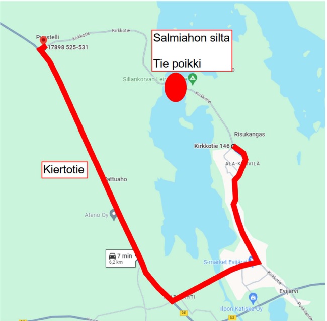 Salmiahon silta Evijärven Kirkkotiellä on suljettu liikenteeltä sillan korjaustöiden vuoksi