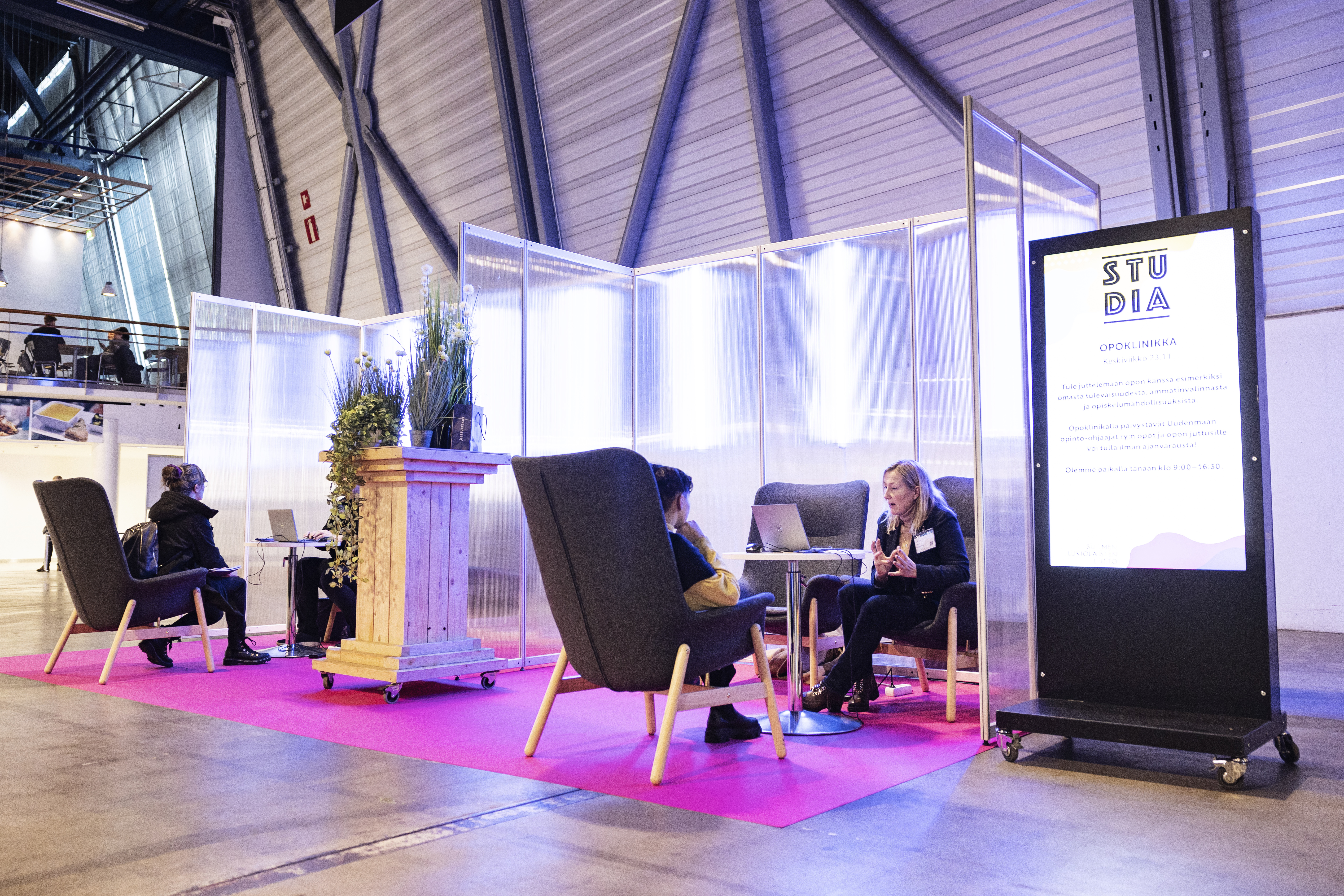 Studia 2023 tuo yhteen seuraavia askeleitaan suunnittelevat opiskelijat ja ajankohtaisen opinto- ja uratarjonnan