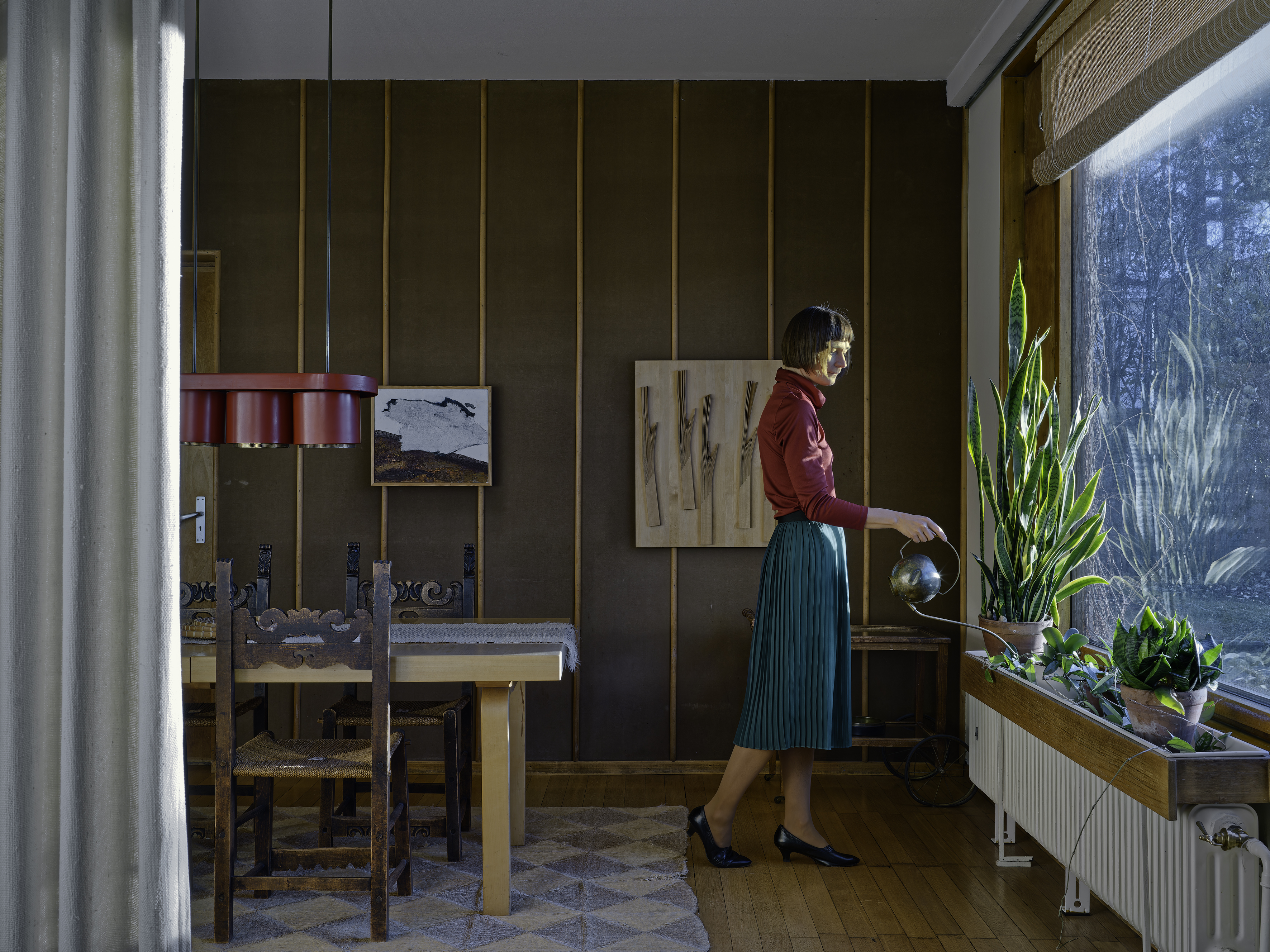 “Tyypillisesti tulen paikalle mukanani kamera, kaksi linssiä sekä kassillinen vaatteita. En hanki kuviin erityistä puvustusta vaan valitsen omista vaatteistani sellaisia, jotka sopivat talon aikakauteen. Vaatteilla voin myös tuoda kuviin haluamiani värejä ja geometrisiä muotoja. Kuvat löytyvät spontaanisti paikan päällä: on ihanaa ja jännittävää ettei etukäteen tiedä mitä löytää.”