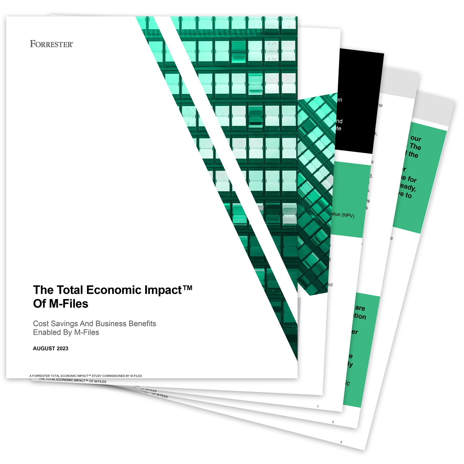 Mikäli haluat lisätietoja M-Filesin mahdollistamista kustannussäästöistä ja liiketoimintahyödyistä, lataa Forresterin koko M-Filesin Total Economic ImpactTM (TEI) -tutkimus täältä: https://media.m-files.com/fi/forrester-tei-study-m-files-2023