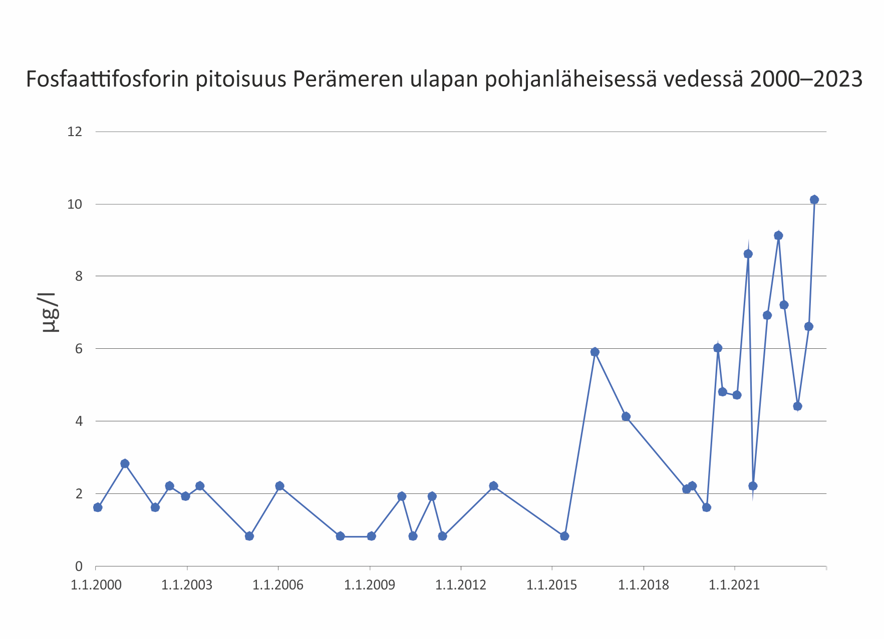 Perämeren avomeren pohjanläheisen fosfaattifosforin pitoisuus on jatkanut viime vuosina havaittua kohoamistaan. Happitilanne alueella on kuitenkin erinomainen koko vesipatsaassa, joten pitoisuuden nousu ei ole seurausta sisäisestä kuormituksesta. Jatkossa onkin syytä seurata, onko kyseessä merkki merialueen pohjien heikentyneestä kyvystä sitoa fosforia vai onko kyse Itämeren pääaltaalta Selkämeren kautta virranneesta fosforista. Selkämerellä pohjanläheinen happitilanne on edelleen hyvä, vaikka se pitkällä aikavälillä onkin heikentynyt. Pohjaeläinyhteisöt ovat alueella runsaita ja hyvässä tilassa.
