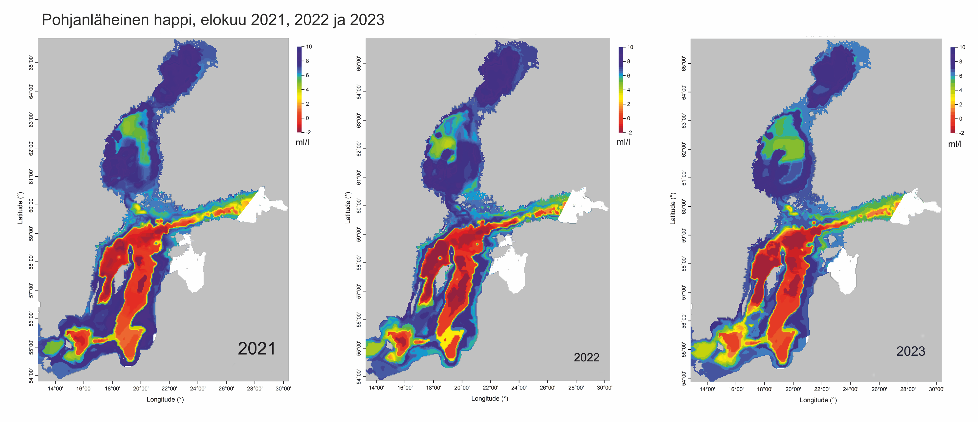 Syken merentutkimusalus Aranda ja rannikkoseuranta-alus ovat palanneet vuosittaisilta loppukesän seurantamatkoiltaan. Perämeren avomerialueen pohjanläheisen veden fosfaattifosforin pitoisuus on jatkanut kohoamistaan. Happitilanne Suomen merialueilla vastasi Itämeren Suojelukomission (HELCOM) tuoretta tilanarviota: avoimen Suomenlahden syvävedessä se on heikko, eikä pohjilla esiinny pohjaeläimiä. Pohjanlahdella happitilanne on hyvä tai erinomainen, ja pohjaeläinyhteisöt ovat elinvoimaisia. HELCOM arvioi rehevöitymistilan Suomea ympäröivillä avomerialueilla yleisesti välttäväksi ja rannikkoalueilla tyydyttäväksi.
