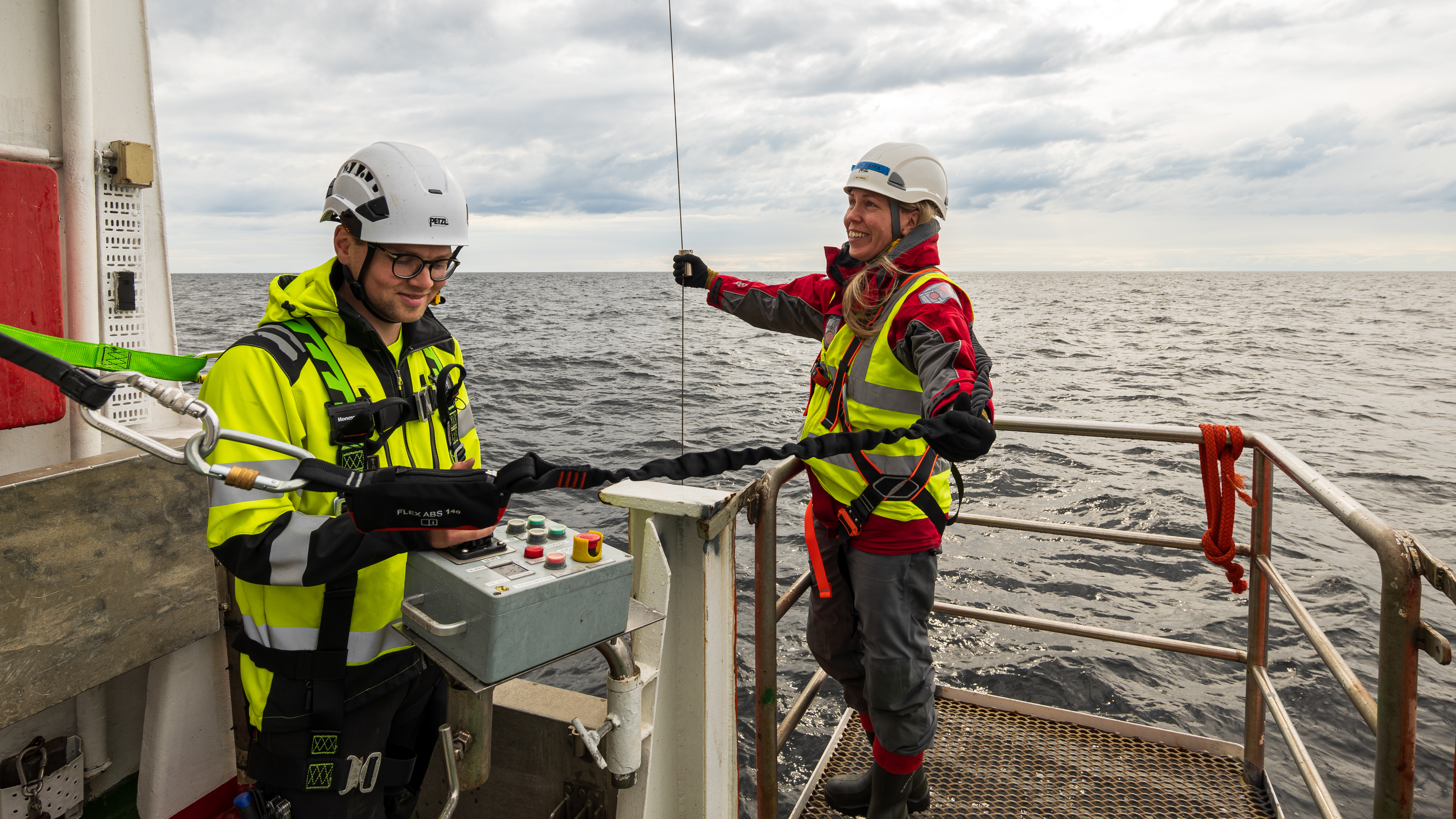 Sami Rantapusa and Siru Tasala taking samples onboard R/V Aranda in August 2023. © Ilkka Lastumäki / Finnish Environment Institute The publication is allowed in news related to the Finnish Environment Institute and the monitoring of the Baltic Sea.