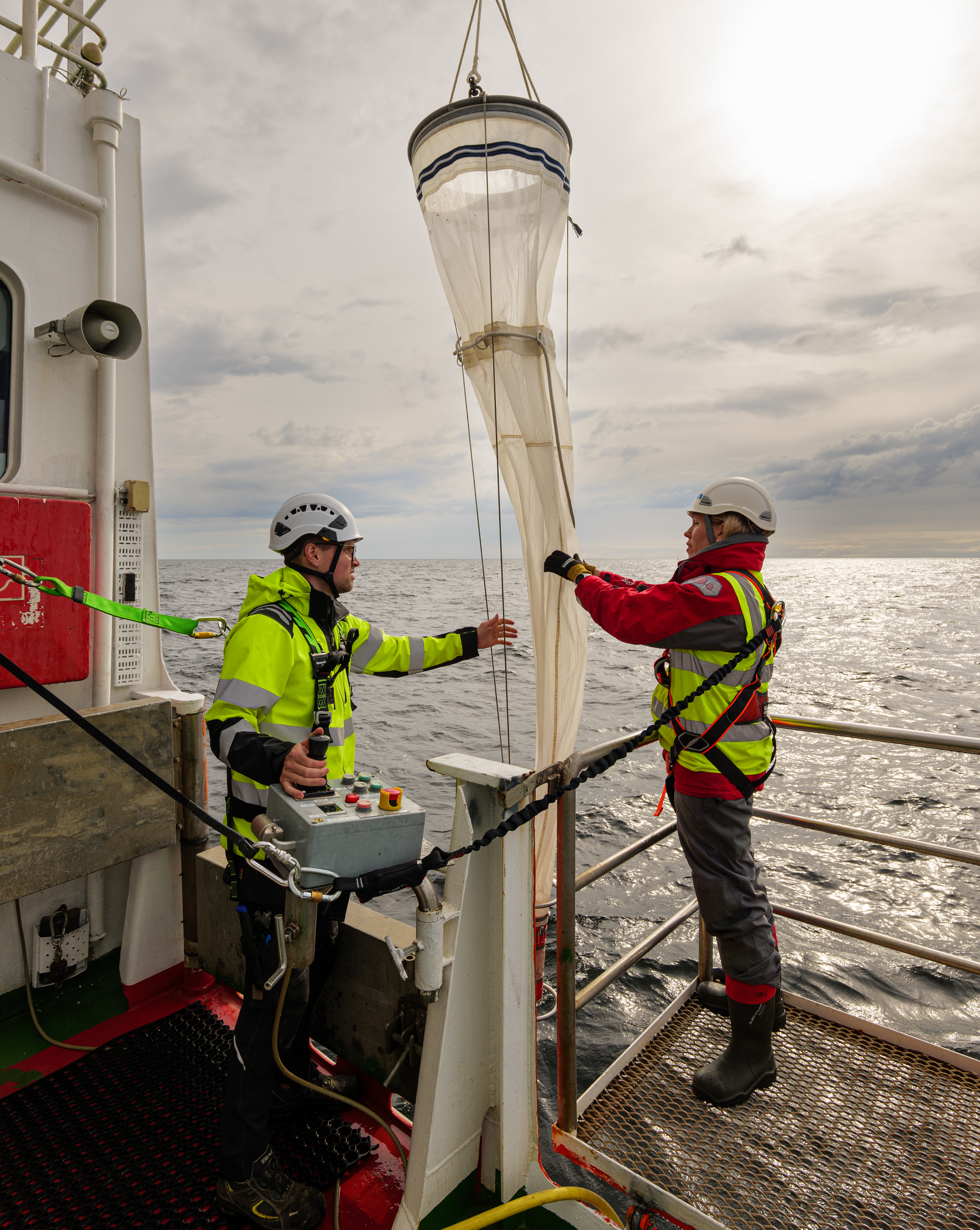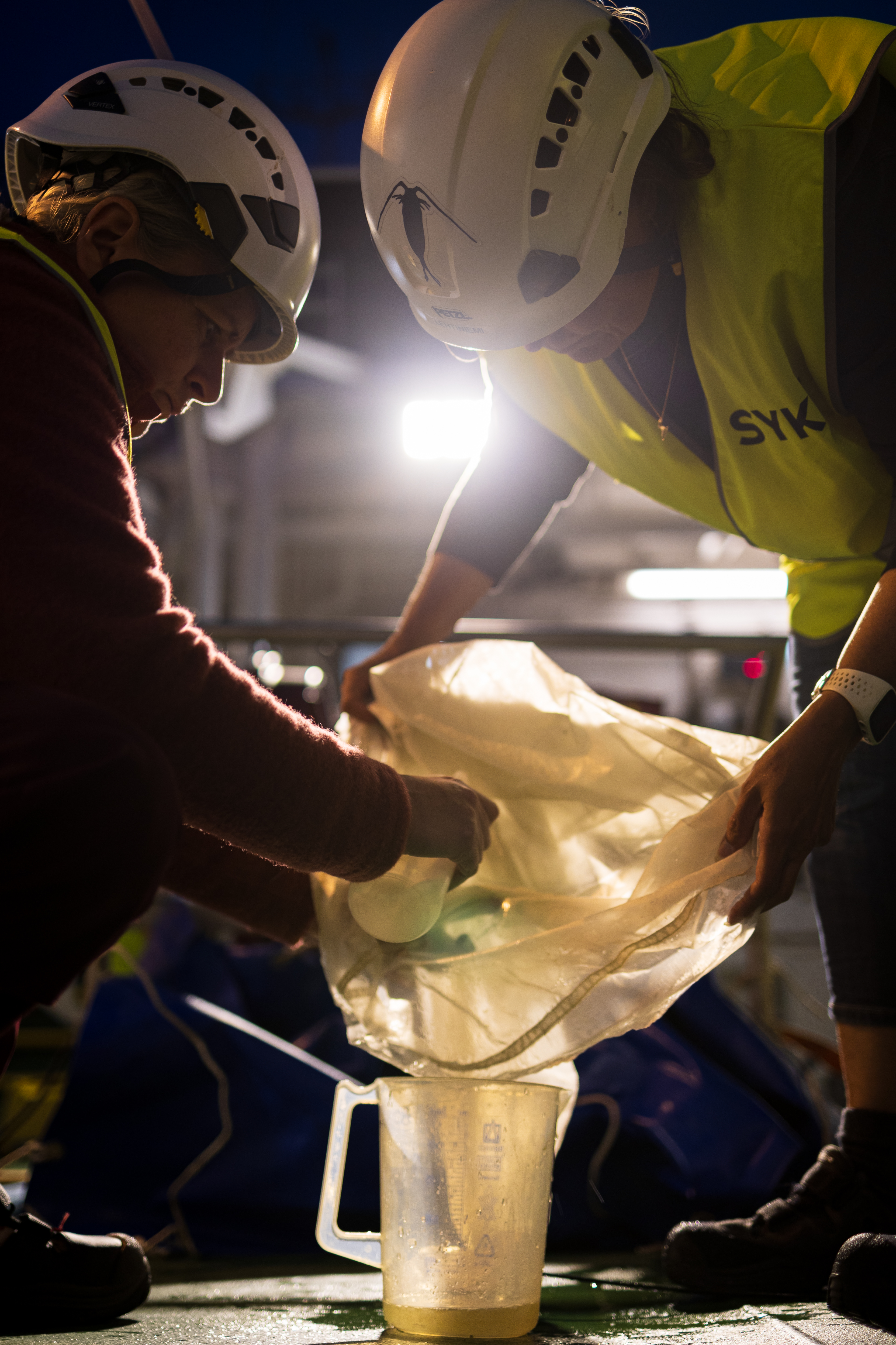 Anne-Mari Luhtanen and Maiju Lehtiniemi taking samples onboard R/V Aranda in August 2023.