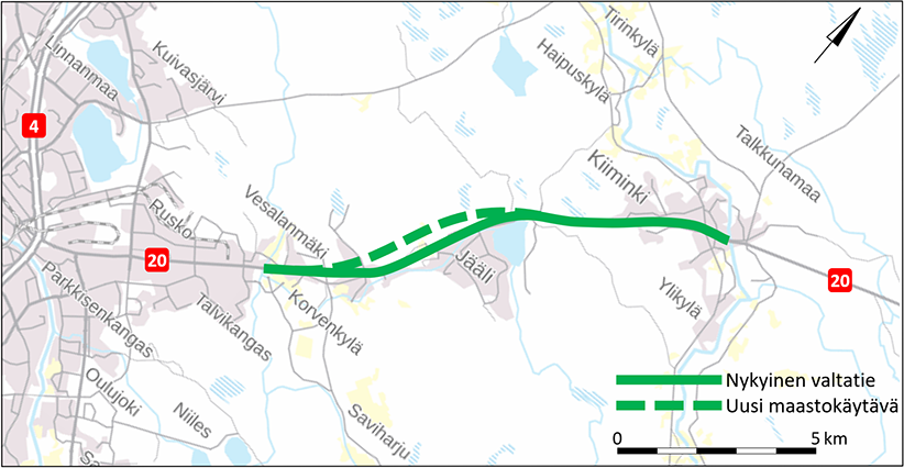 Valtatie 20 Oulusta Kuusamoon on Oulun seudun tärkeimpiä pääteitä, jonka kautta kulkee päivittäisen työ- ja asiointiliikenteen lisäksi pitkämatkaista, erityisesti vapaa-ajan liikennettä. Tieyhteys palvelee myös alueen elinkeinoelämää. Tarkasteltava valtatieosuus on nykyisin ruuhkainen ja altis liikenneonnettomuuksille, ja liikenteen kasvu lisää ongelmia entisestään. Valtatien varrella asuu runsaasti ihmisiä, joille valtatieliikenteen melu ja päästöt aiheuttavat haittaa.
