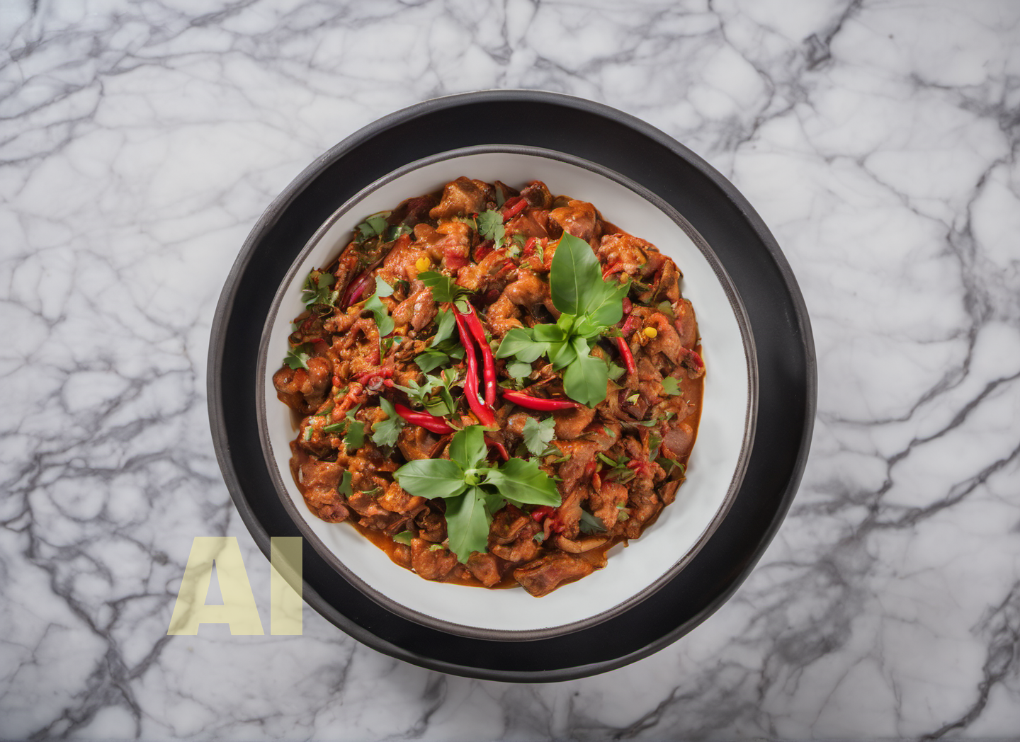 Tekoälyn luomat kuvat ovat kuin aidot annoskuvat, koska tekoäly nappaa annoksen idean olemasta olevista annoskuvista sekä annoskuvauksesta. Tekoälyn luomat kuvat vastaavat siis todellista annosta. Asiakasta varten tekoälyn luomissa kuvissa on vesileima, josta tunnistaa kuvan alkuperän.