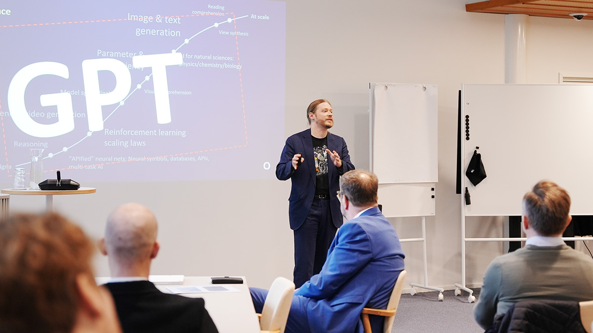 Euroopan suurimman tekoälylaboratorion Silo AI:n operatiivinen johtaja Jaakko Vainio puhui tilaisuudessa siitä, miten yritykset voivat käyttää tekoälyä datan hyödyntämisessä.