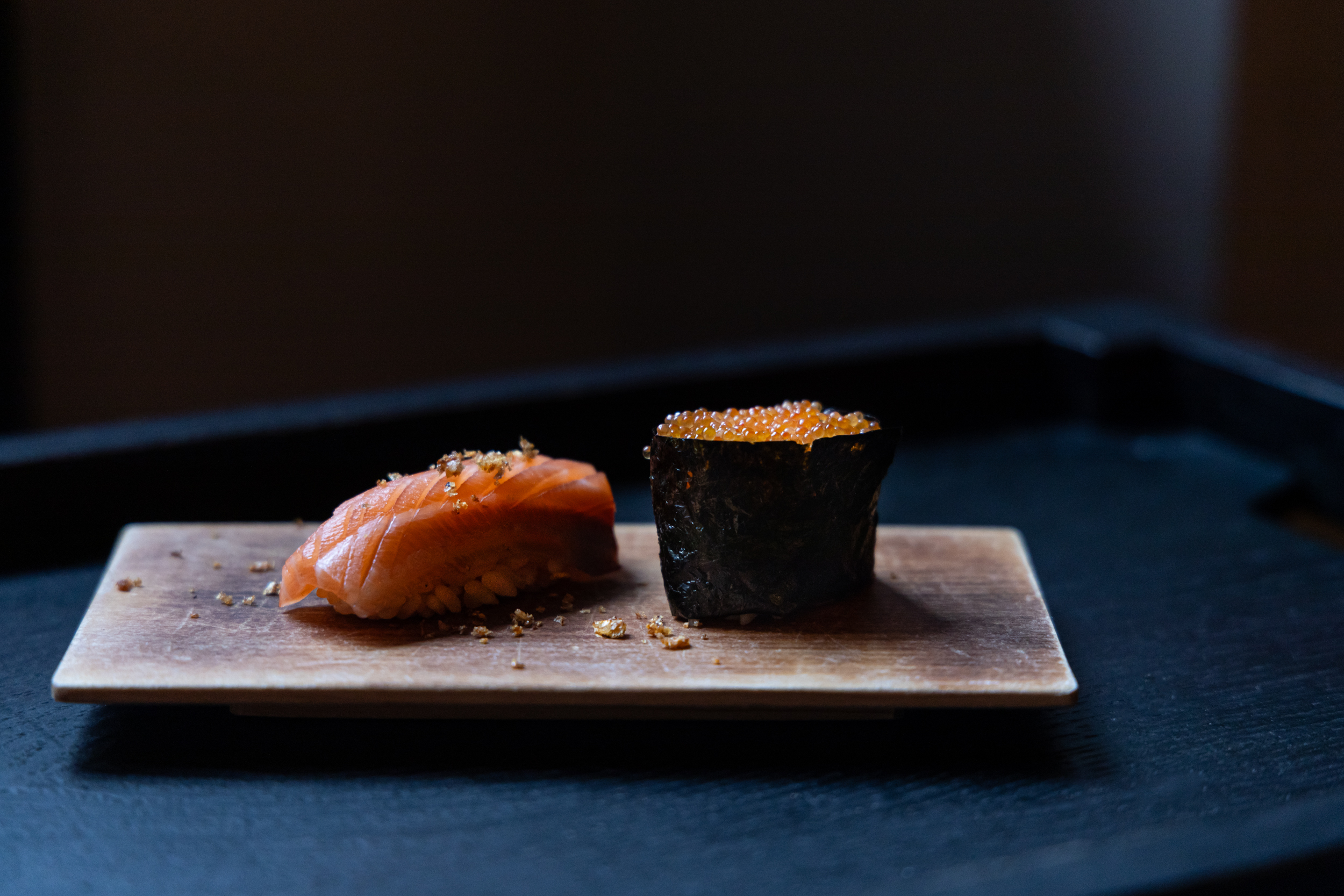 Endo X Finnjävel -menu alkaa Norihito Endon lohinigirillä. Keittiömestari on tuonut annoksiaan varten mukanaan Japanista pitkään kypsynyttä soijakastiketta, pohjoisjapanilaista merilevää sekä punaista riisiviinietikkaa, joka edustaa alkuperäisintä tapaa maustaa sushiriisi. Riisi tarjoillaan hieman lämpimänä, jolloin etikan maku pyöristyy ja nigirin aromit korostuvat.