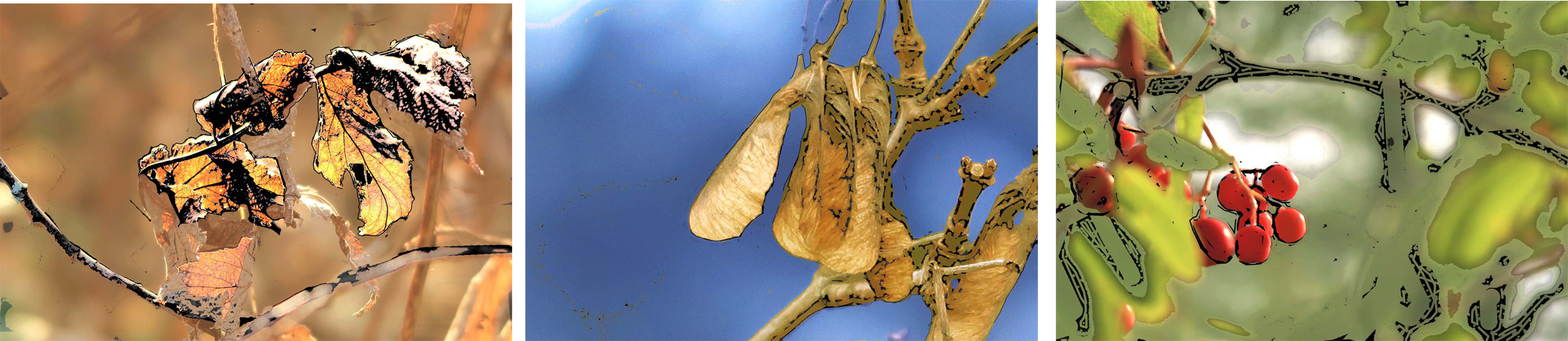 In a coloured embossed image printed on sparkling paper, only the black areas of the image are raised, thus the shape of the image can be explored by feeling its surface. In a nature picture, the embossed element brings three-dimensionality to the image, heightening its atmosphere and giving the viewer a whole new possibility to perceive the image.