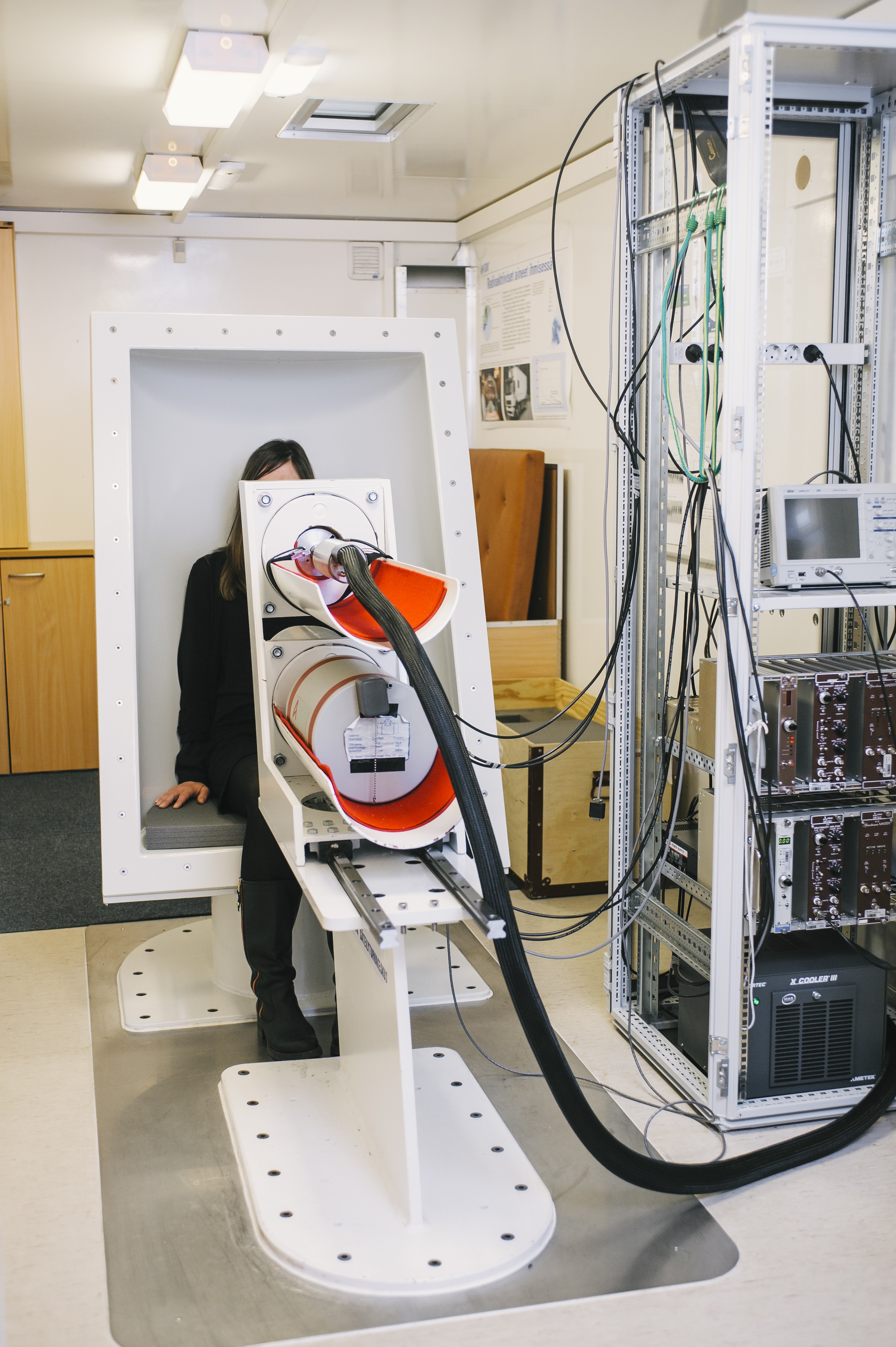 Helsingin yliopiston kampusalueelle parkkeeratussa STUKin kuorma-autossa on mittauslaitteisto, jonka avulla havaitaan ihmisissä olevat gammasäteilyä lähettävät aineet. Viidentoista minuutin mittauksessa selviää, kuinka paljon radioaktiivisuutta kehossa on ja mitä radioaktiiviset aineet ovat.