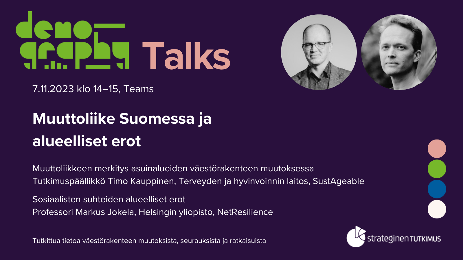 Muistutuskutsu 7.11. DEMOGRAPHY Talks: Muuttoliike Suomessa ja alueelliset erot
