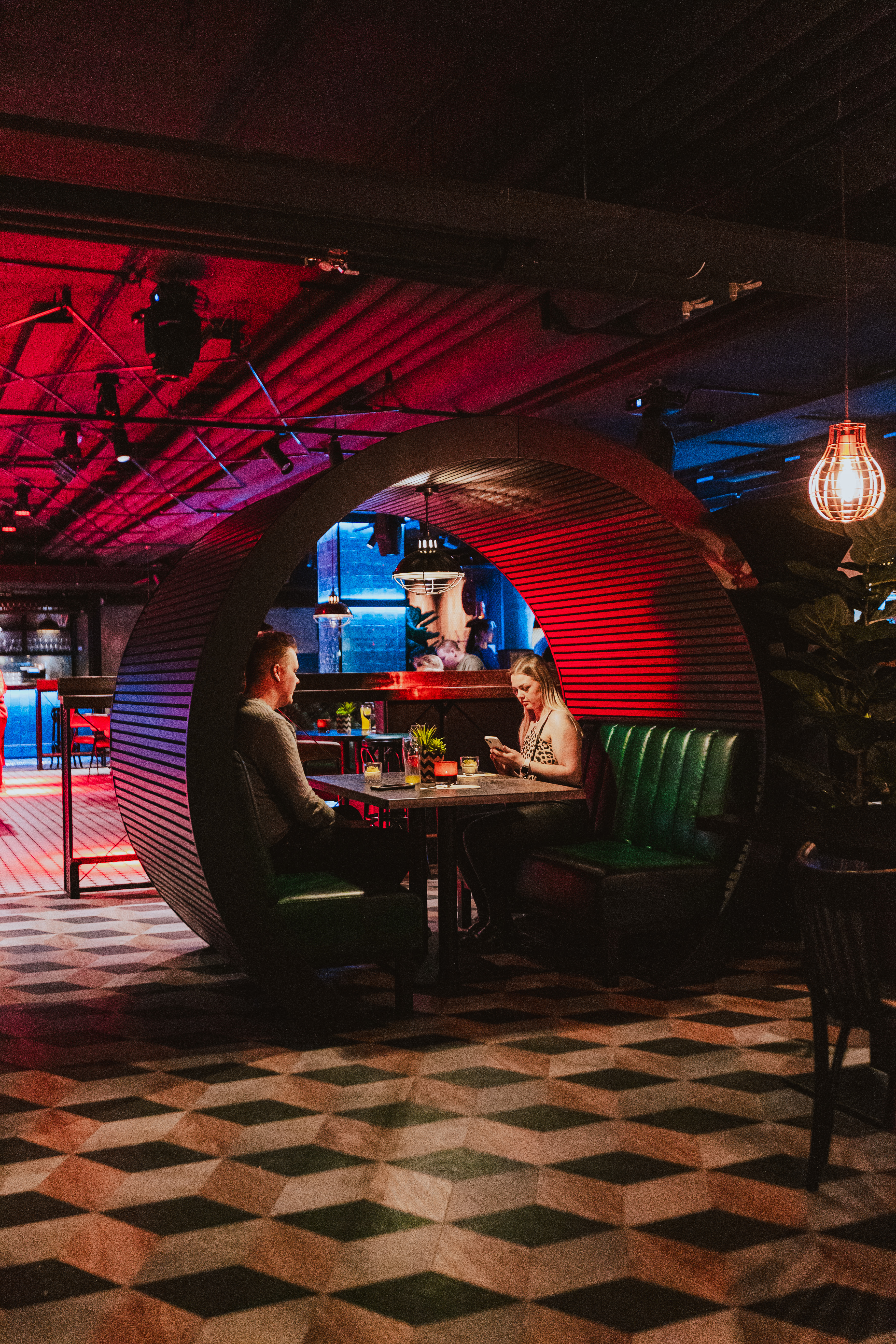 Yksi keskeisistä suunnittelun elementeistä on monimuotoisuus. Red Onion toimii arkipäivisin lounasravintolana. Iltaisin paikka on italialaistyylinen ruokaravintola.