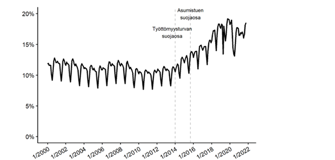 Taloudelliset kannustimet ovat selkeästi vaikuttaneet tähän kehitykseen. Tutkimuksen perusteella asumistuen suojaosan käyttöönotto kasvatti satunnaisesti tai osa-aikaisesti työskentelevien työttömien osuutta noin 3 prosenttiyksikköä, eli pienimuotoisesti työskentelevien työttömien osuus kasvoi noin viidenneksellä.