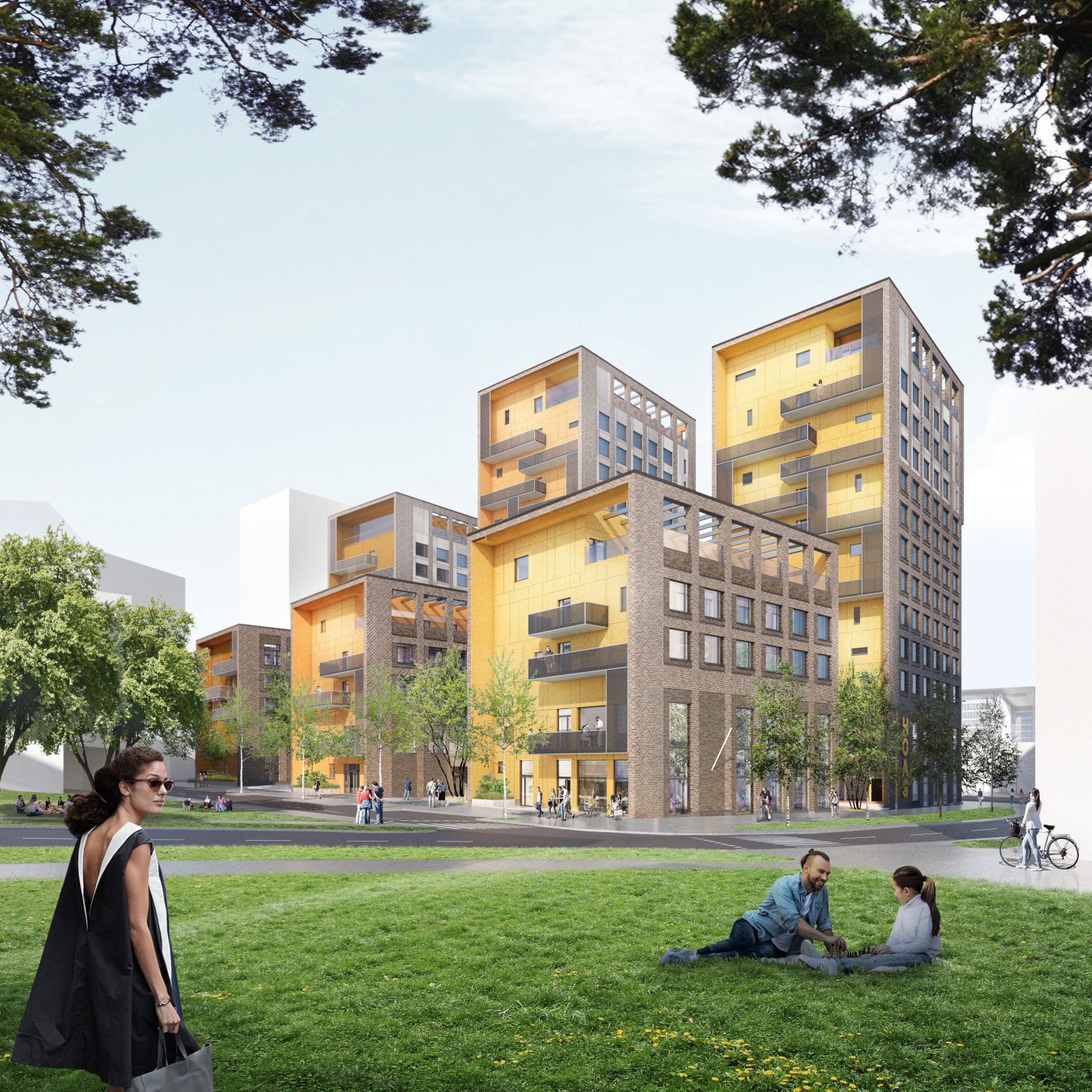 – Huipussa on paljon suuria viherkattoja ja maisematerasseja. Tiiviillä tontilla käytännössä kaikki piha-alueet ovat kansipihojen viheralueita. Katoille tulee kuntoilulaitteita ja viljelylaatikoita, joissa opiskelijat voivat kasvattaa yrttejä ja vihanneksia, Lehtinen sanoo.
