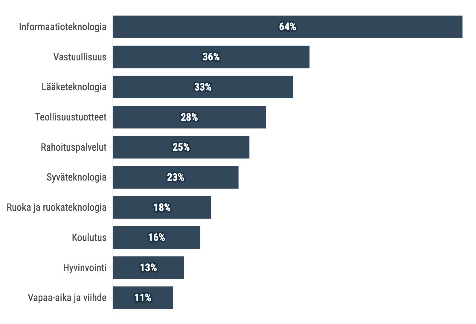 FiBANin tutkimukseen vastanneista jäsenistä jopa 86% kertoo aktiivisesti etsivänsä uusia sijoituskohteita. Ohjelmistoratkaisut, kestävä kehitys sekä lääketieteelliset teknologiat nousivat kyselyssä kärkisijoille kiinnostavimpina sektoreina. “Erityisesti kestävän kehityksen teemat ovat nostaneet merkitystään vahvasti. Näiltäkin toimialoilta kannattaa laittaa FiBANille hakemuksia,” Laisi-Puheloinen kehottaa.