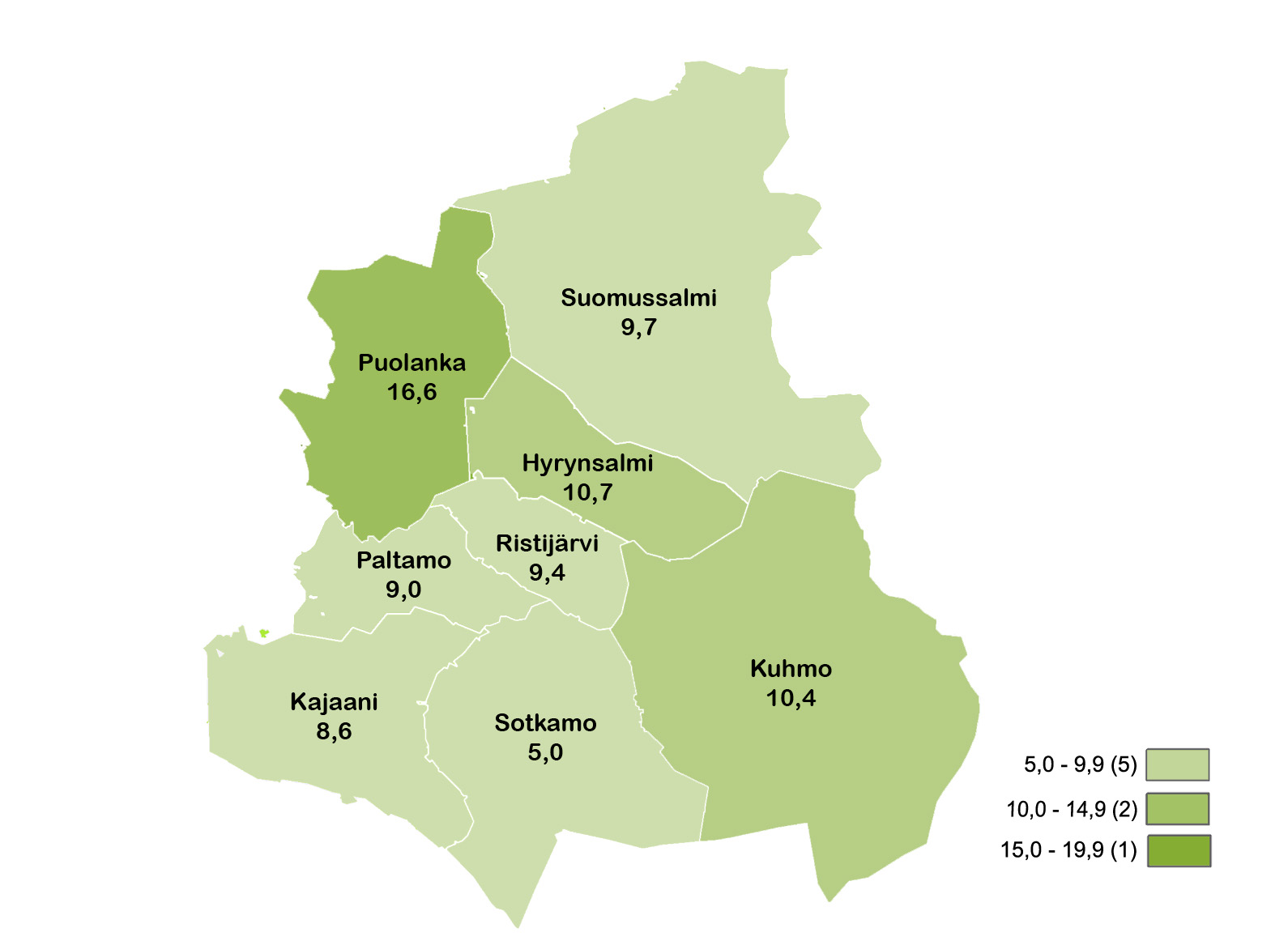 Työttömyysaste oli Kainuussa kuun lopussa 8,6 %. Tämä oli ELY-keskusalueista neljänneksi vähiten ja 0,2 prosenttiyksikköä enemmän kuin vuotta aiemmin. Koko maassa työttömyysaste oli 9,7 %, mikä on 0,9 prosenttiyksikköä vuoden takaista enemmän.