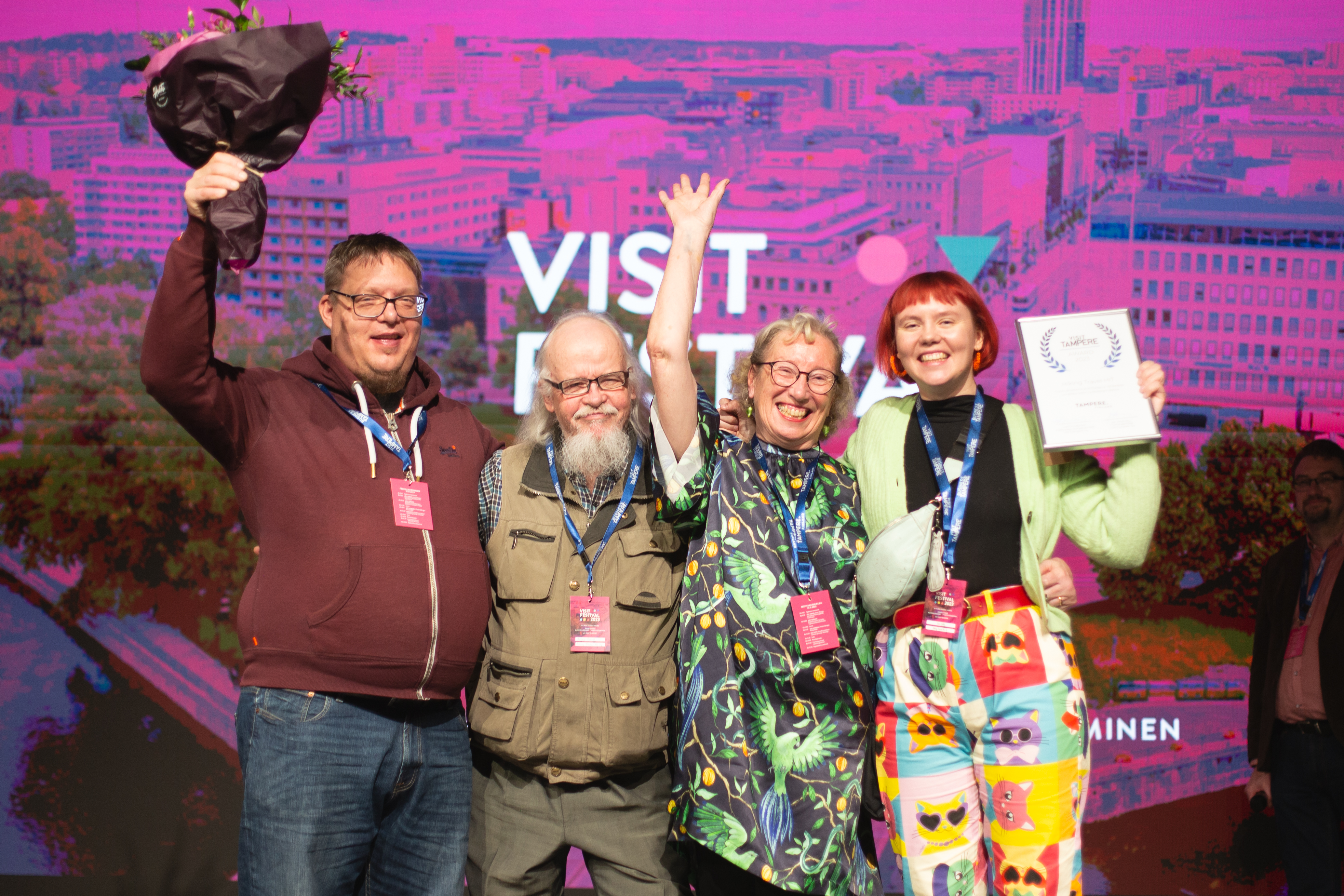 Hiking Travel, Hit on vuoden 2023 Visit Tampere Award -palkinnon voittaja. Kuvassa Tapio Tyllilä, Pekka Tyllilä, Liisa Tyllilä ja Tuire Tyllilä. Kuva: Laura Vanzo, Visit Tampere