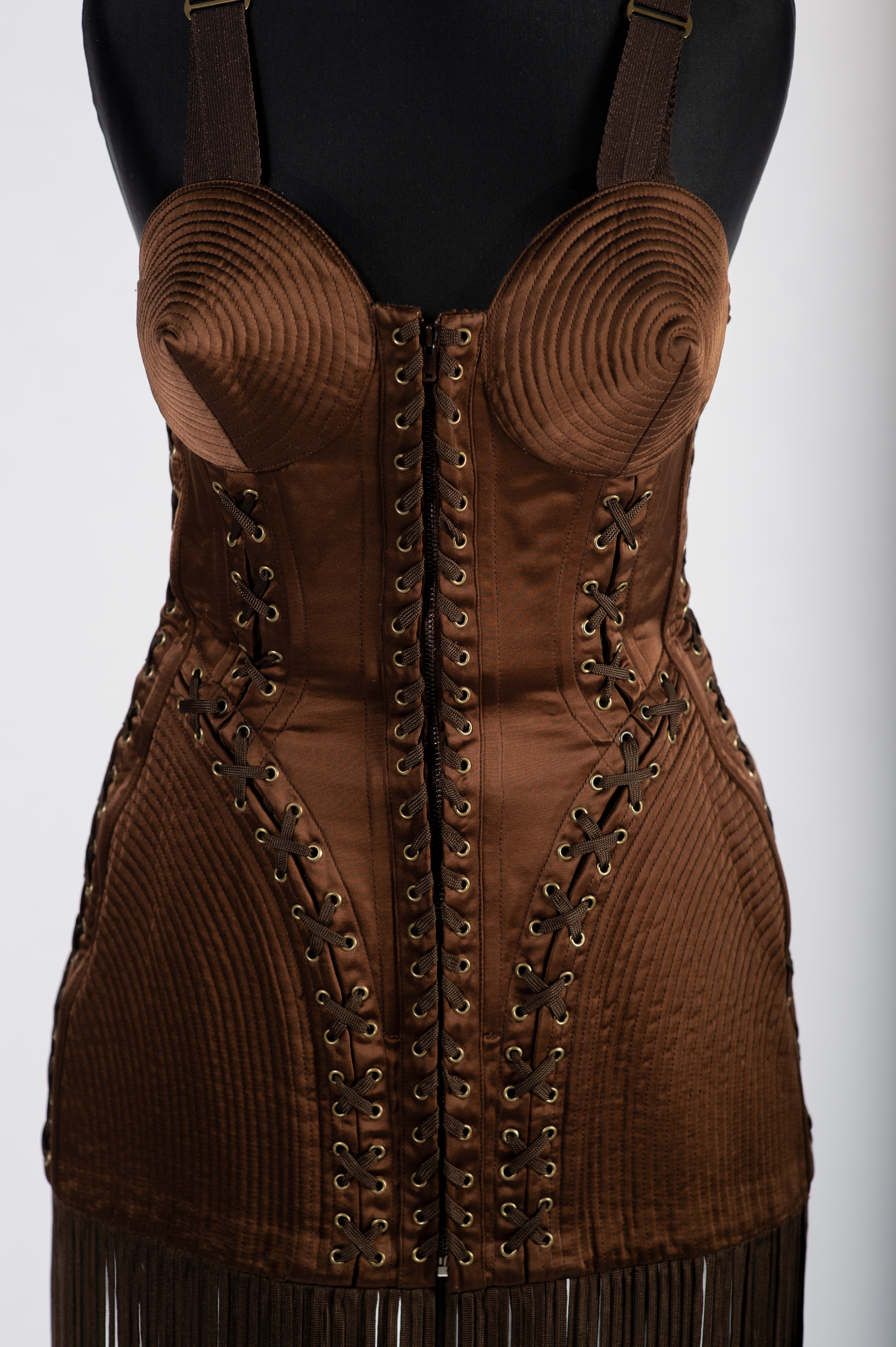 Muodin huipulla -näyttely esittelee muodin loisteliasta ja värikästä historiaa 1770-luvulta 2010-luvulle. Kimmellystä, tyylikkyyttä ja dramatiikkaa tarjoilevat puvuillaan muotimaailman huippusuunnittelijat kuten Paul Poiret, Elsa Schiaparelli, Versace, Jean-Paul Gaultier ja Alexander McQueen. Muodin vanhinta kerrostumaan edustaa upea naisen hovipuku Ranskasta 1770-luvulta.