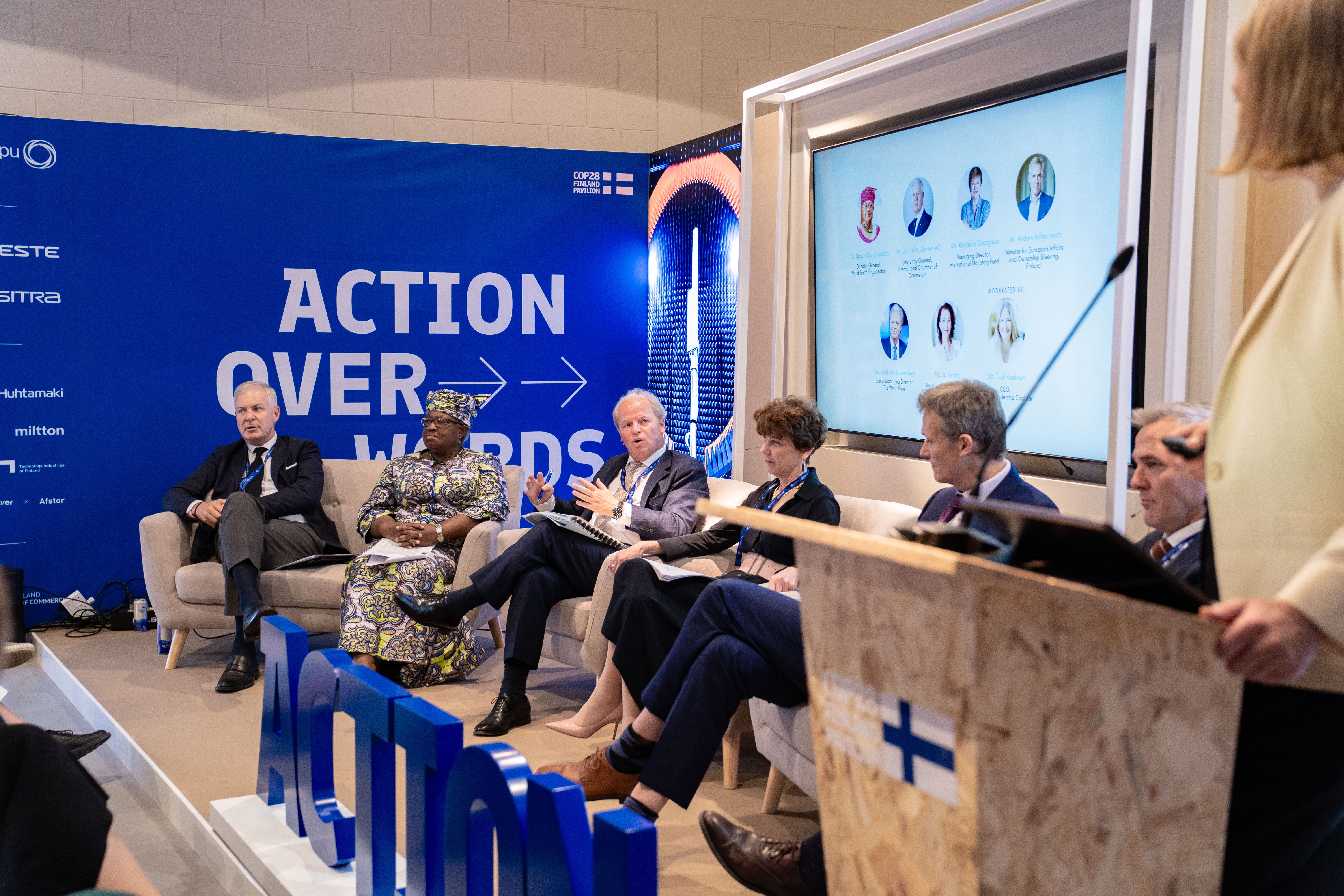 Joulukuun 2. päivänä korkean tason ryhmä kansainvälisten talousjärjestöjen johtajia kokoontui COP28-tapahtumaan Suomen paviljonkiin keskustelemaan hiilen hinnoittelusta. Ryhmän oli kutsunut koolle kansainvälistä hiilen hinnoittelua pitkään edistänyt suomalainen yritysten ilmastoverkosto Climate Leadership Coalition.