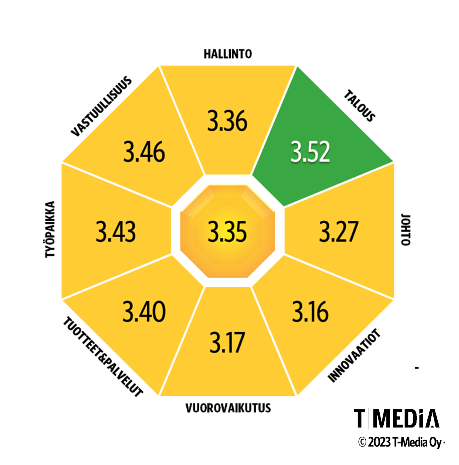 Luottamus&Maine-tarkastelussa jokaiselle organisaatiolle lasketaan maineluku asteikolla 1–5.