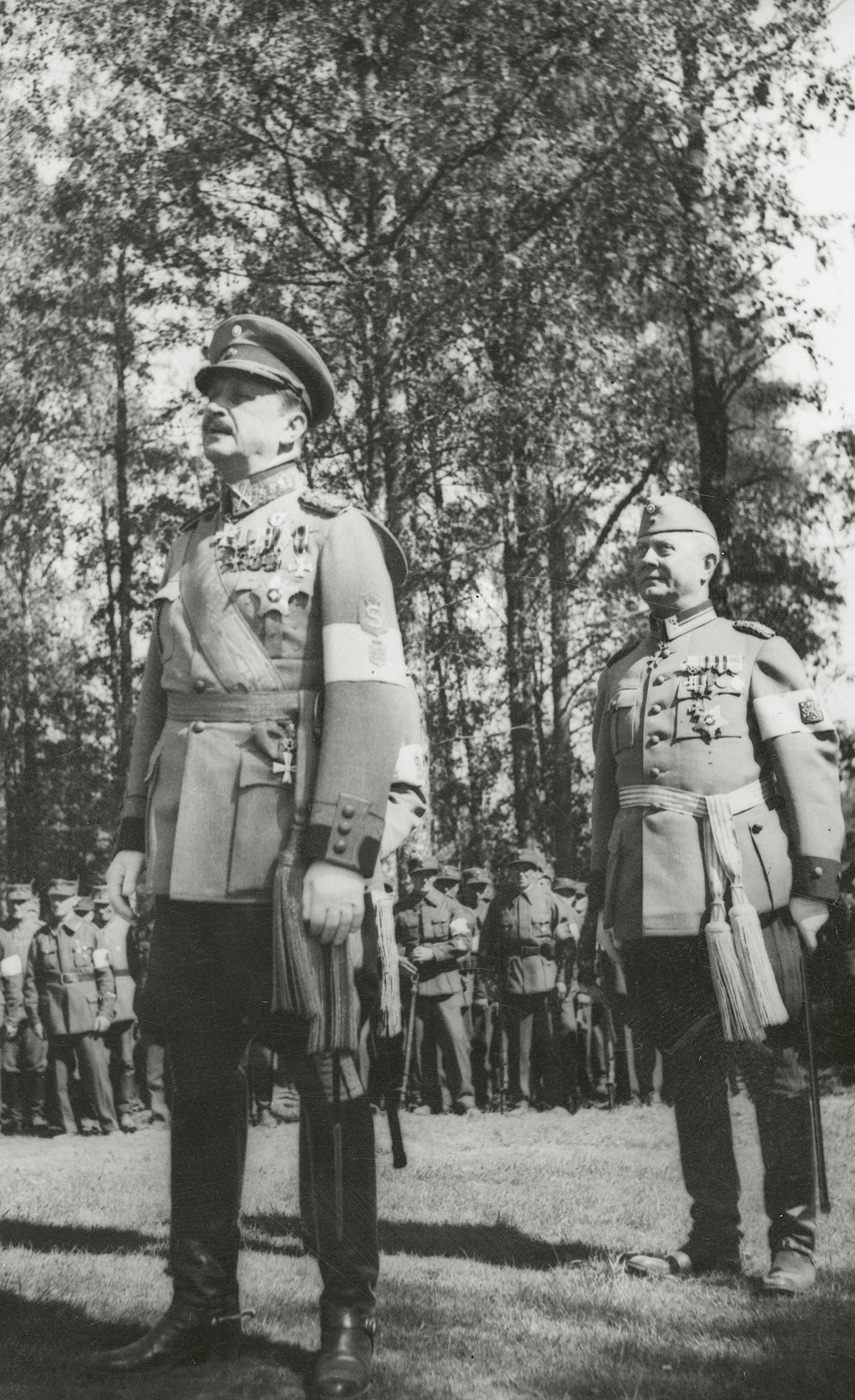 Sotamarsalkka C. G. E. Mannerheim ja reservin eversti¬luutnantti Gösta Serlachius osallistuivat Vilppulan taistelujen muistomerkin paljastustilaisuuteen vuonna 1938.