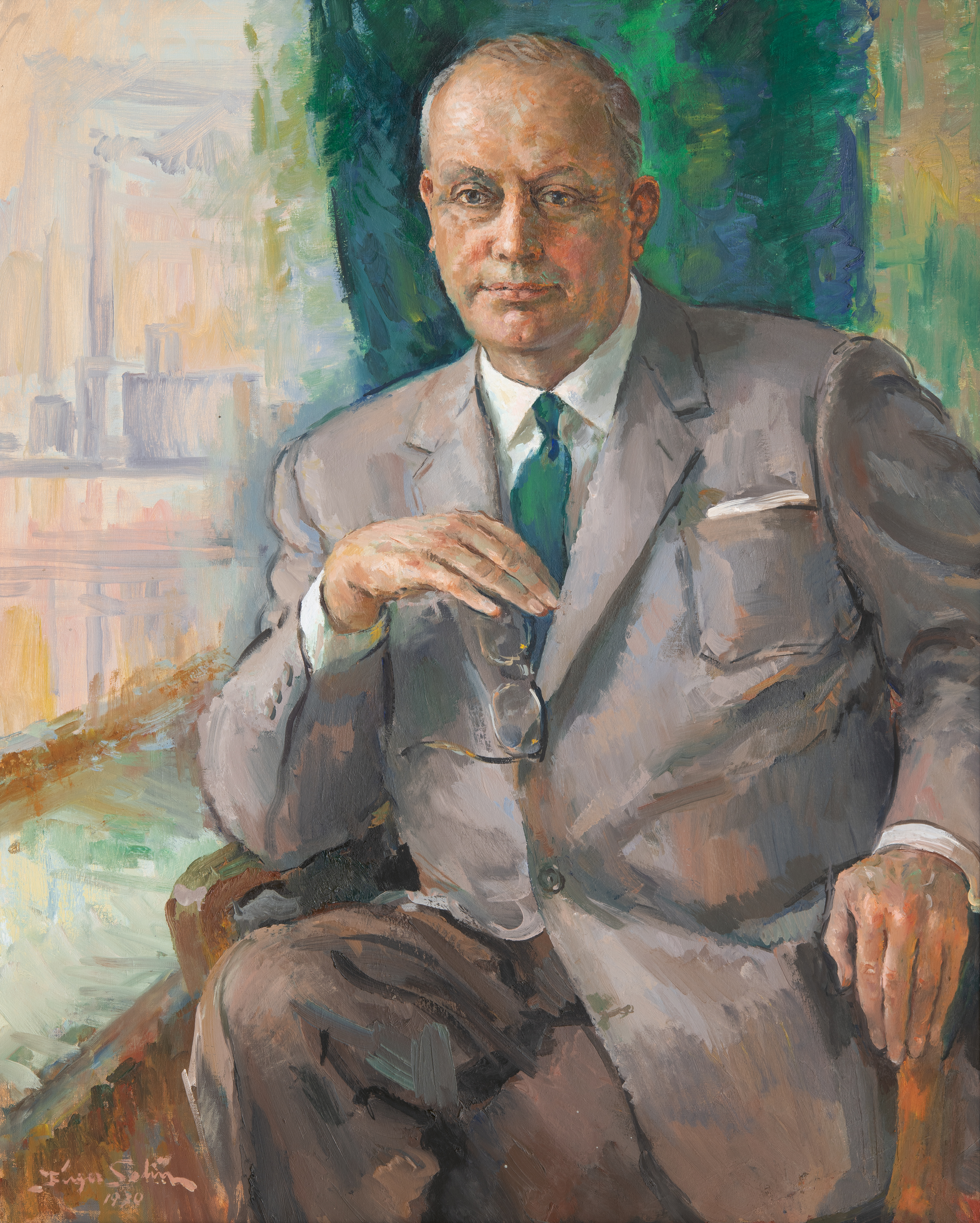 Birger Selin: Vuorineuvos R. Erik Serlachiuksen muotokuva, 1950, öljy kankaalle 100,5 ✕ 81 cm