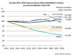 Vuoden 2022 lopussa työeläkevakuutettuja oli kaikkiaan 3,4 miljoonaa ja heistä 2,5 miljoonaa oli työssä. Yksityisellä sektorilla työskenteli lähes 1,9 miljoonaa vakuutettua ja julkisella sektorilla reilut 700 000 vakuutettua. Molemmilla sektoreilla työskenteli samanaikaisesti noin 100 000 henkilöä.