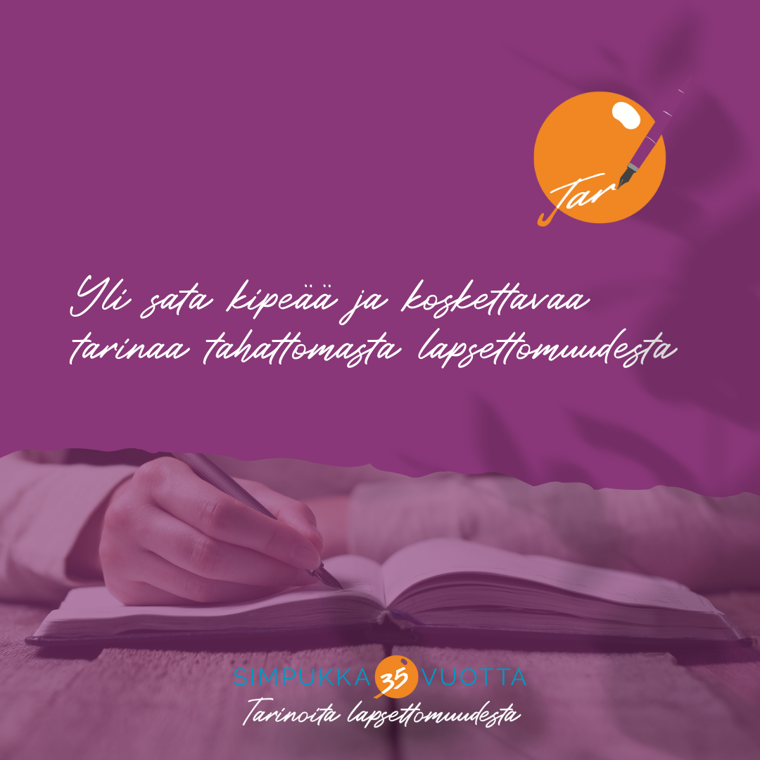 Simpukka ry keräsi vuoden 2023 aikana tahatonta lapsettomuutta kokeneiden tarinoita. Tarinoiden kerääminen oli yksi tahattoman lapsettomuuden yhteisön ja asiantuntijaorganisaation 35-vuotisjuhlavuoden kampanjoista. Simpukka etsi tarinoiden kirjoittajia verkkosivuillaan, Simpukka-jäsenlehdessään, somekanavissaan ja verkko- ja vertaisryhmissään.