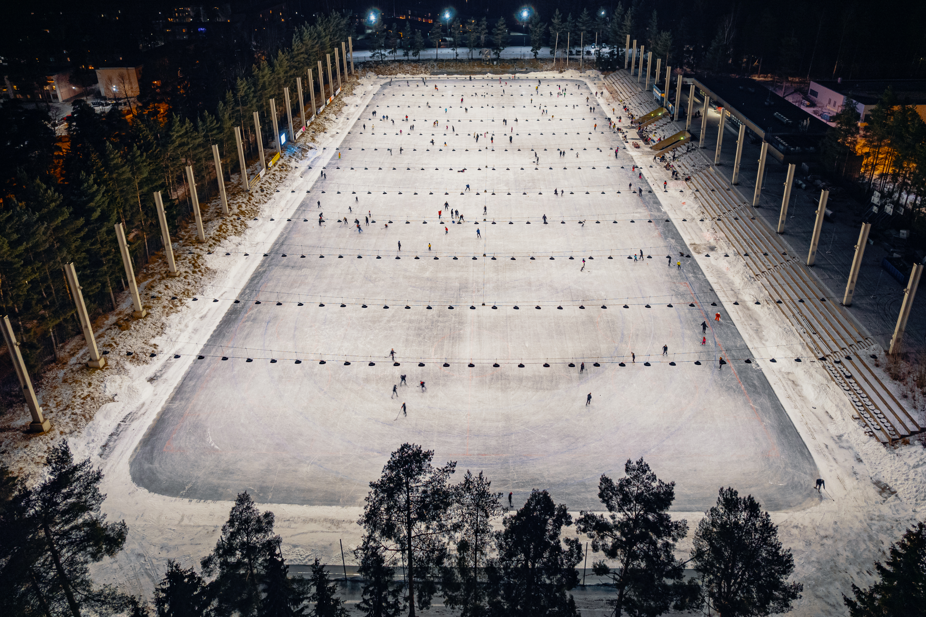 Staden bjuder på massor av möjligheter till utomhusmotion kring jul och nyår. Helsingfors konstisbanor är stängda endast på julafton, men övriga dagar kan man åka skridskor där helt gratis. I tjänsten ulkoliikunta.fi kan man kontrollera när Helsingfors konstisbanor har öppet för allmänheten och eventuella avvikande öppettider.