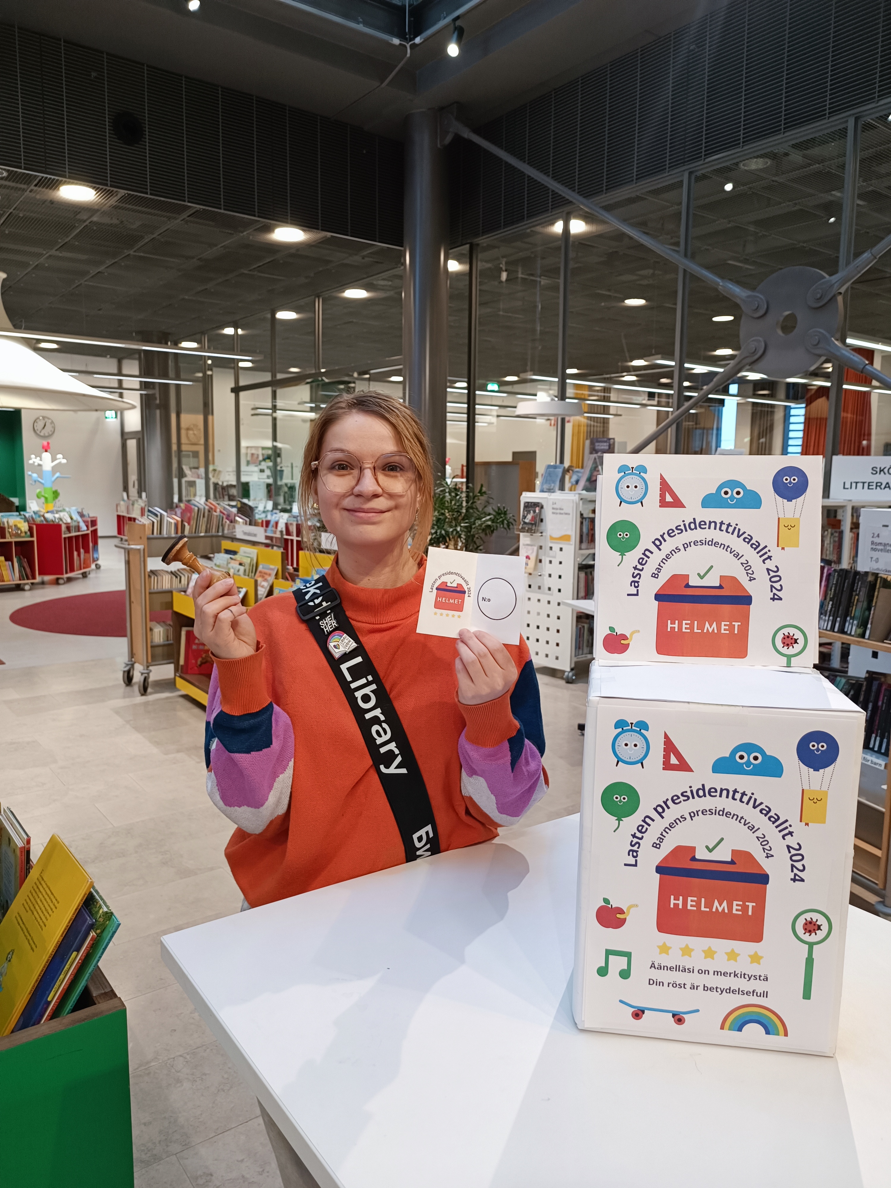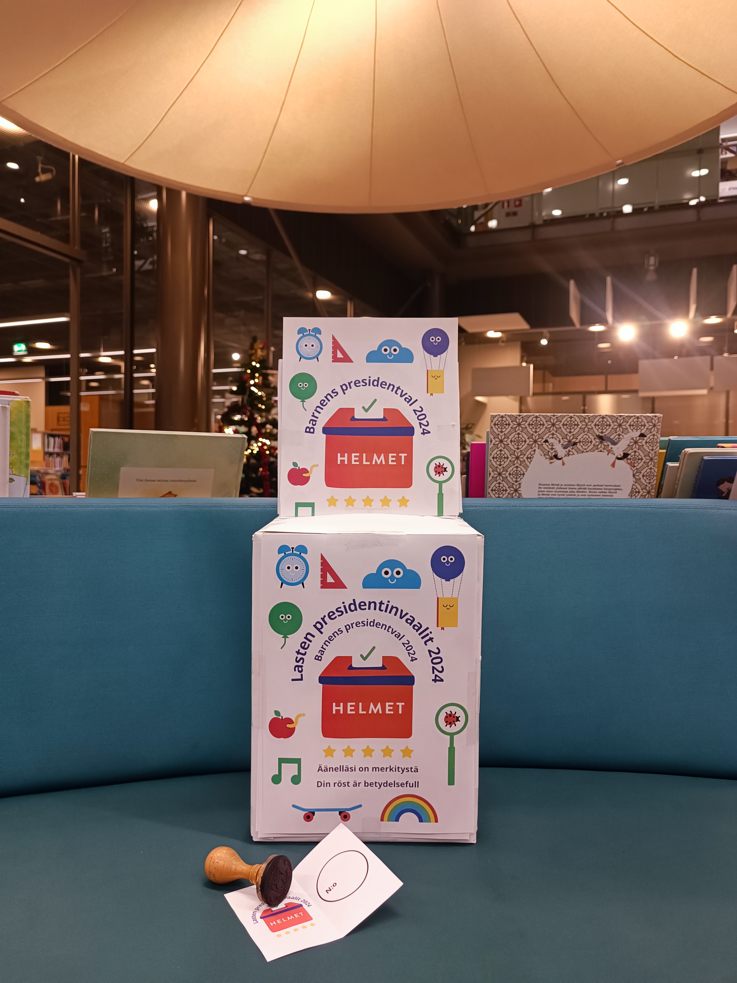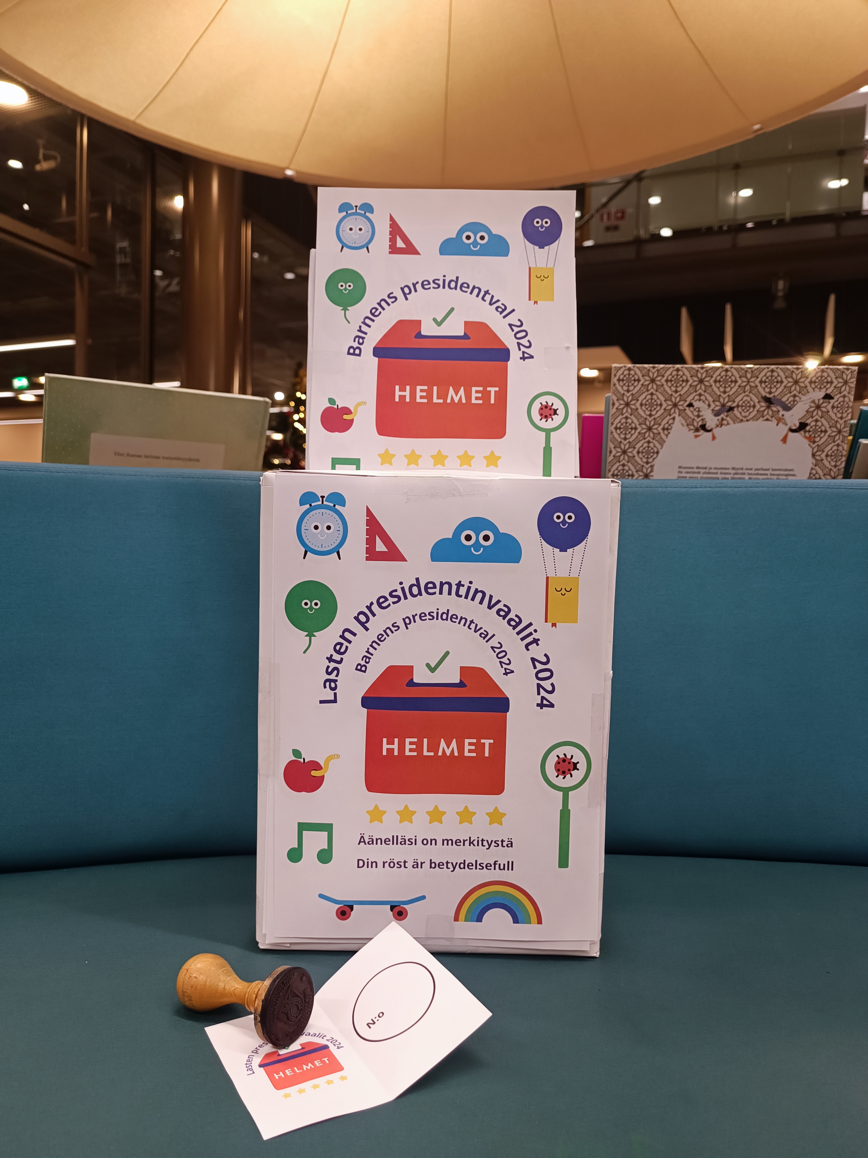 I Esbo bibliotek kan barn i sitt eget presidentval rösta på barnboksfigurer som kandiderar i det. Barn lär sig viktiga medborgar- och demokratifärdigheter med hjälp av lek, så som betydelsen av rösträtt och att rösta, samt praktiska delar av valprocessen.