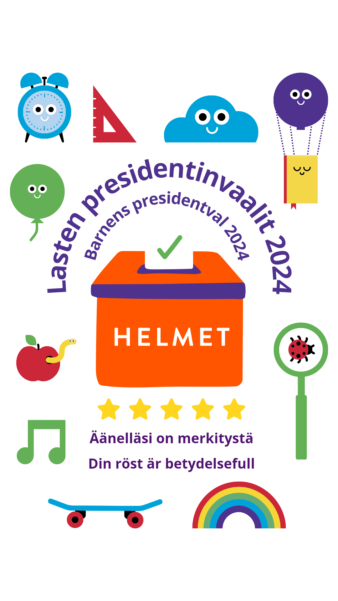 Det pedagogiska ändamålet är att se till att den lilla väljaren förstår hur rösten antecknas, varför val är viktiga och hur varje given röst påverkar. Samtidigt med valen så ordnas även sagostunder i Esbo bibliotek, där man läser kandidaternas böcker.