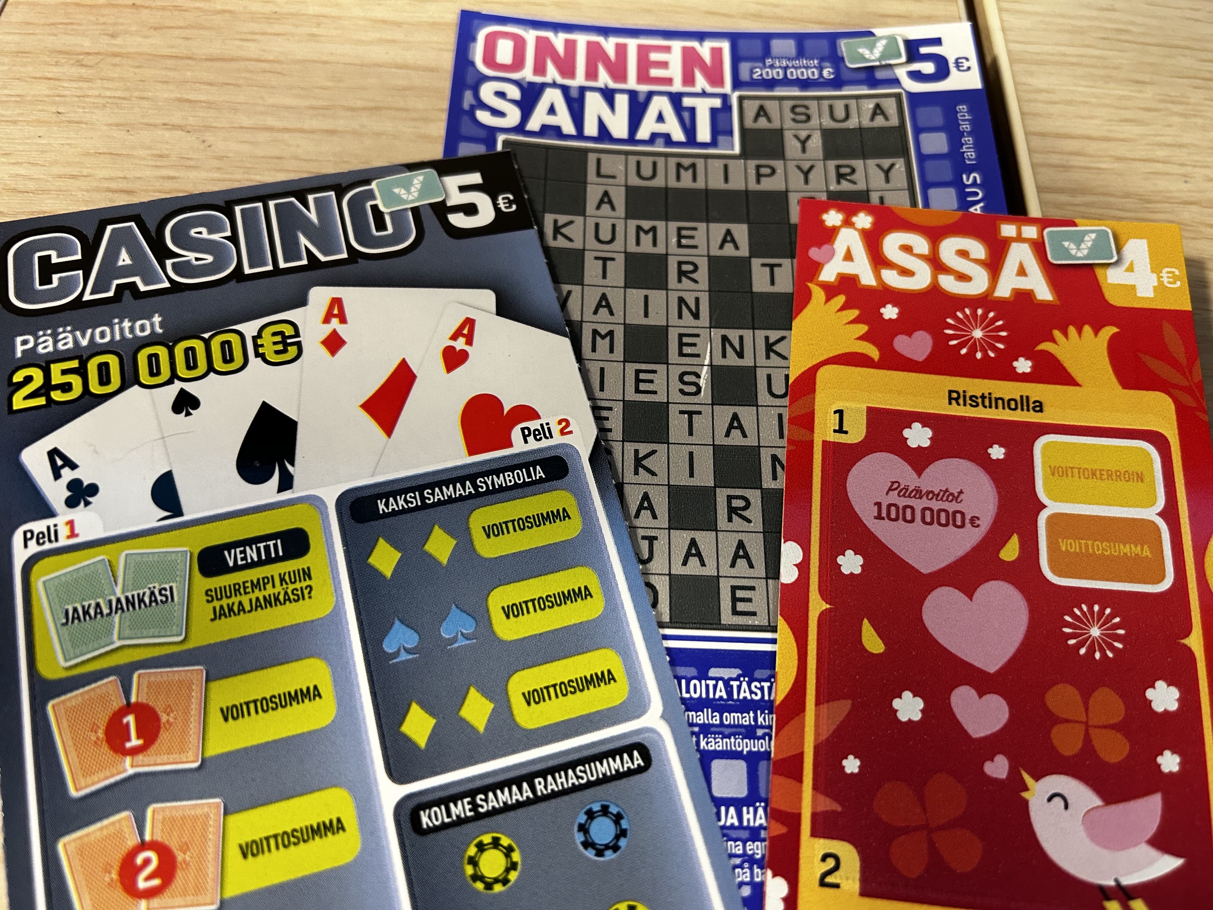 Viimeisenä tuoteryhmänä tunnistautumisen piiriin vuodenvaihteessa siirtyvät tutut raaputusarvat, kuten Ässä- ja Casino-arpa.