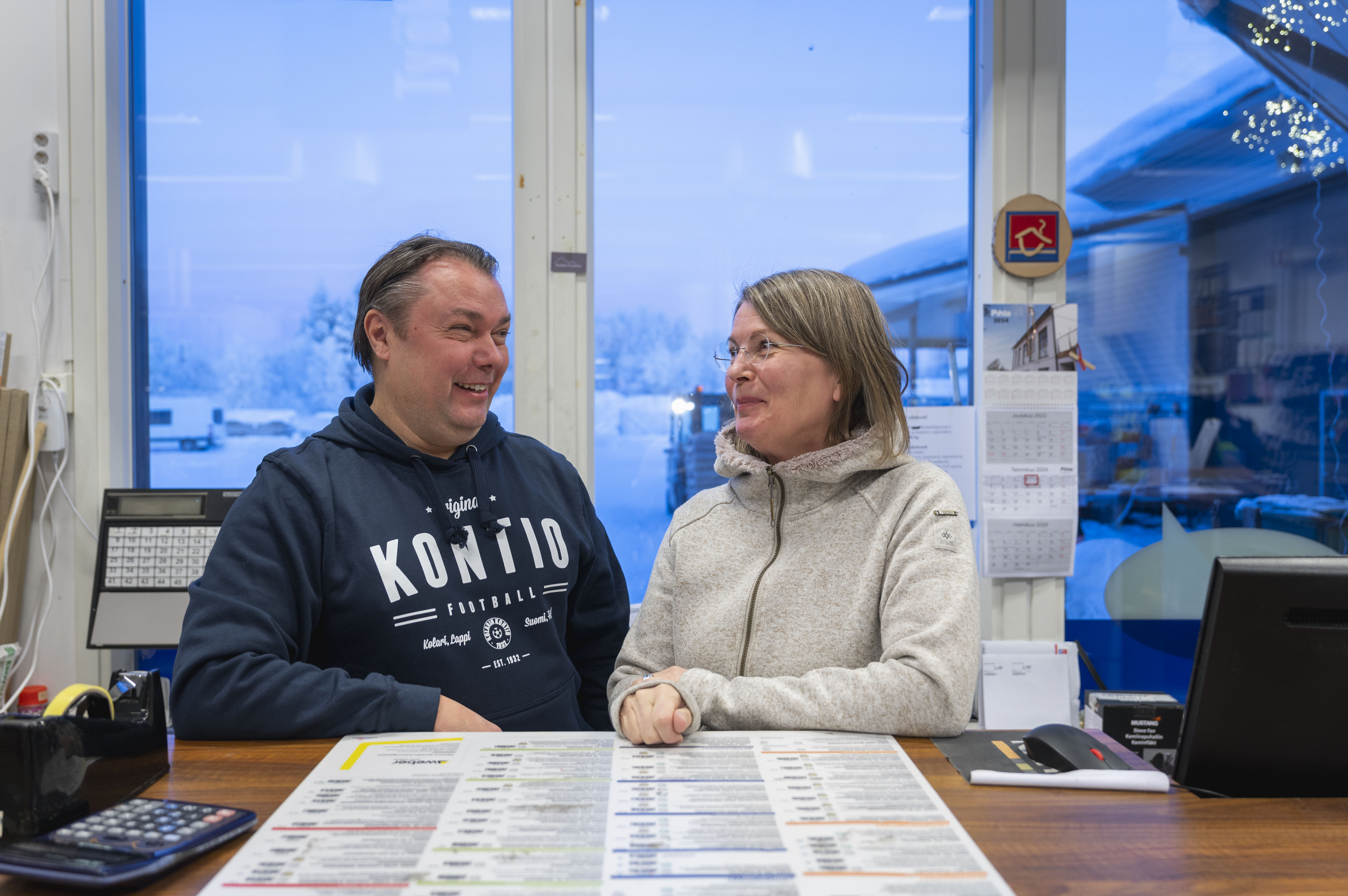Kolarin Rakennustarvikkeen omistajat, kauppias Jaana Riihijärvi ja hallinnosta vastaava Janne Tolonen ovat innoissaan alkavasta käyttöönottoprojektista.