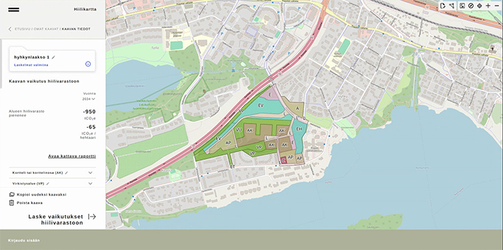 Kaavoittajien mahdollisuudet arvioida kaavoituksen ilmastovaikutuksia paranevat merkittävästi uuden Hiilikartta-työkalun myötä. Hiilikartan avulla voidaan laskea kaavan toteuttamisen vaikutuksia suunnittelualueen maaperän ja kasvillisuuden hiilivarastoon ja hiilinieluun monipuolisesti ja ymmärrettävästi.
