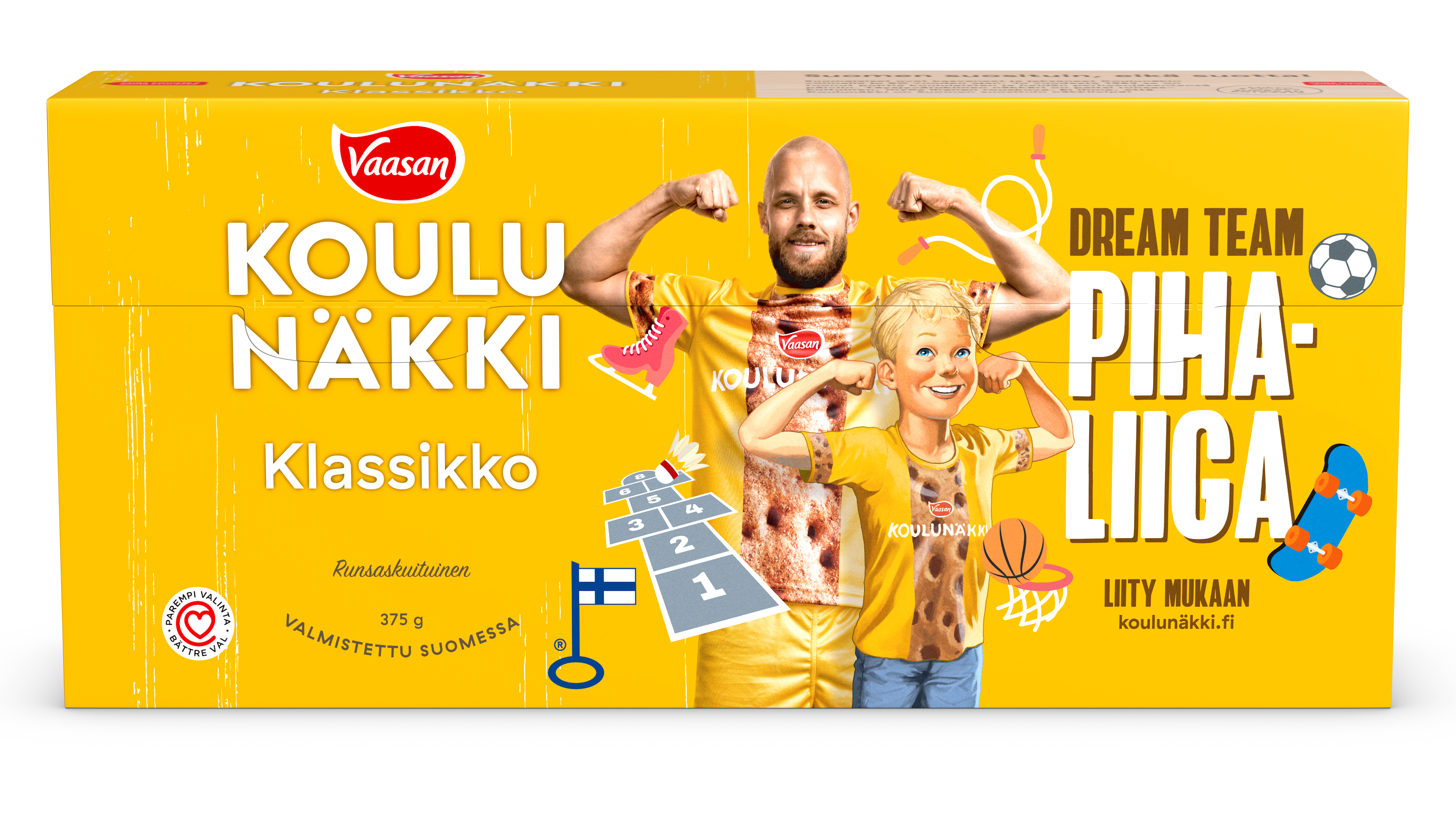 “Koulunäkki Dream Team Pihaliiga -kampanjassamme haluammekin innostaa lapsia ja nuoria terveelliseen elämäntapaan ja kannustaa liikkumaan monipuolisesti”, jatkaa Taxell.