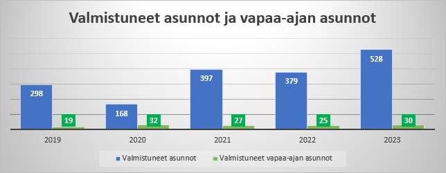 Vuonna 2023 Kangasalle valmistui 528 kappaletta asuntoja, mikä on 149 asuntoa enemmän, kuin vuonna 2022.