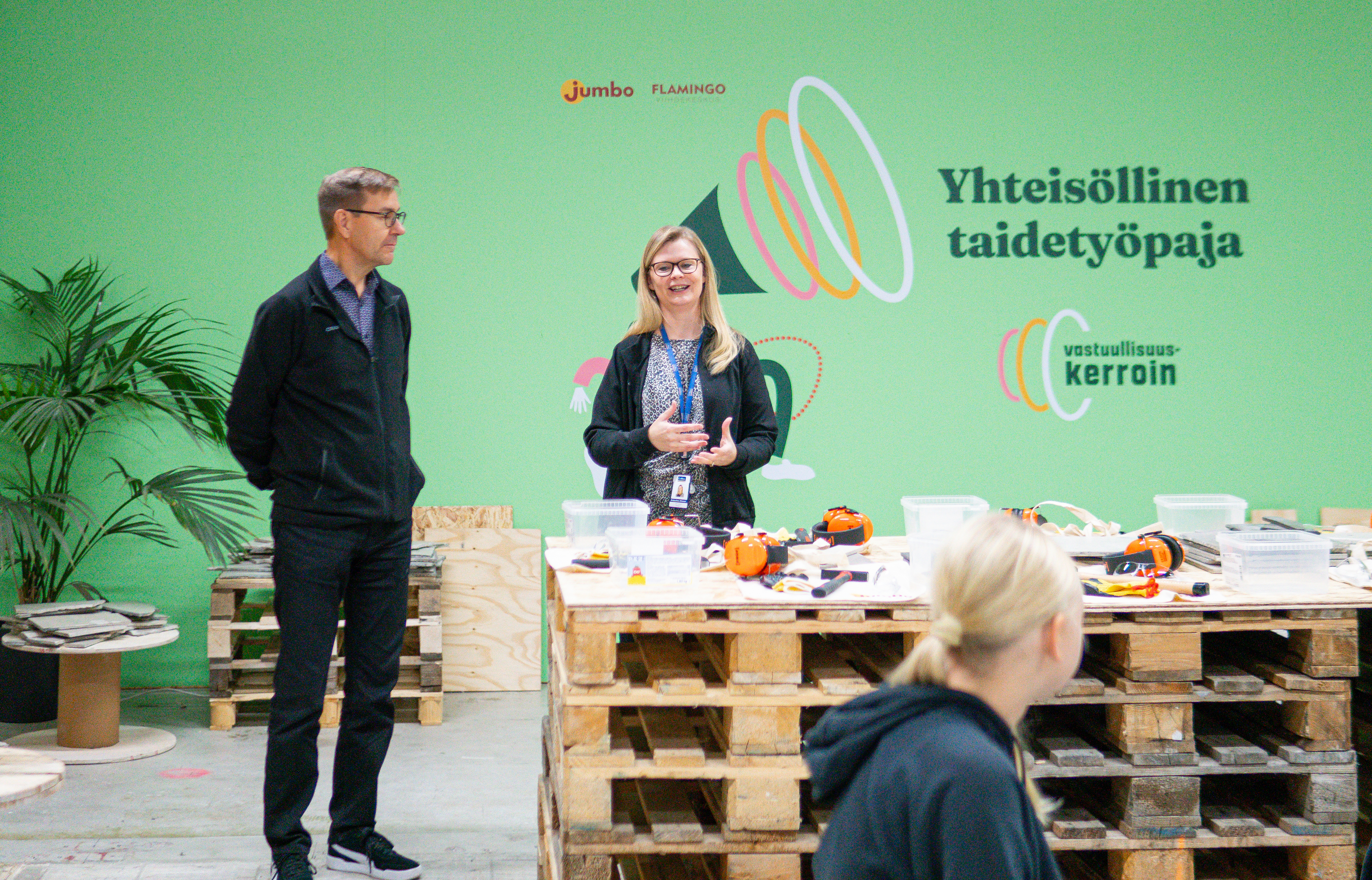 Yhteisölliset taidetyöpajat ovat osa Jumbo-Flamingon vastuullisuuskerrointa, jonka tarkoitus on edistää muun muassa ekologista ajattelua ja yhteisöllisyyttä. Jumbo-Flamingo tähtää Suomen vastuullisimmaksi kauppakeskukseksi vuoteen 2030 mennessä.