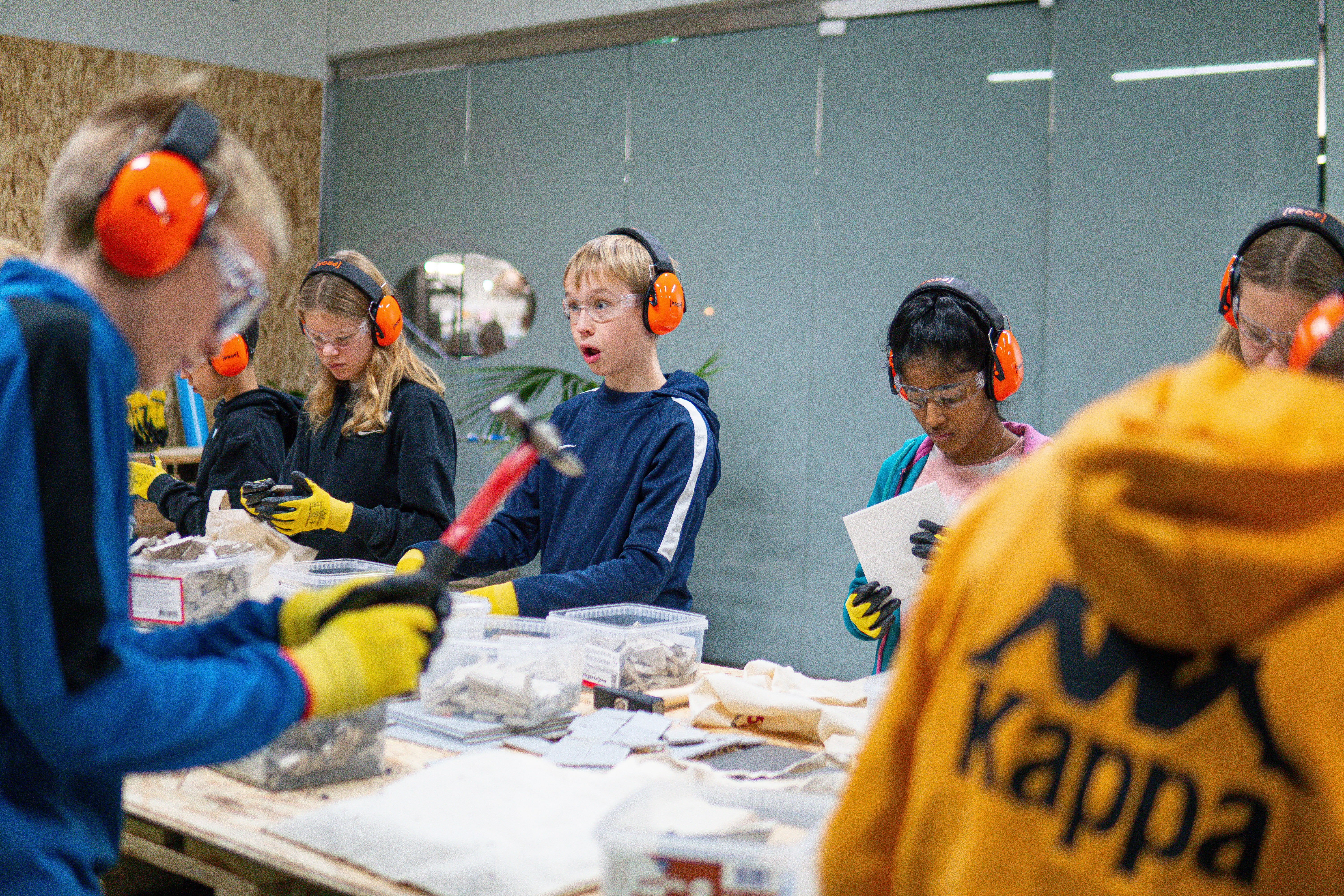 Ensimmäisessä taidetyöpajassa Veromäen koulun kuudesluokkalaiset särkivät vanhat lattialaatat säpäleiksi ja tekivät niistä toinen toistaan hienompia sommitelmia. 19. helmikuuta aukeavassa avoimessa taidetyöpajassa kaikki halukkaat pääsevät jatkamaan taideteoksen sommittelutyötä valmiista palasista. Työpaja sijaitsee Jumbon-Flamingon toisessa kerroksessa Finnkinon myymälän vieressä ja on auki kello 12–16.