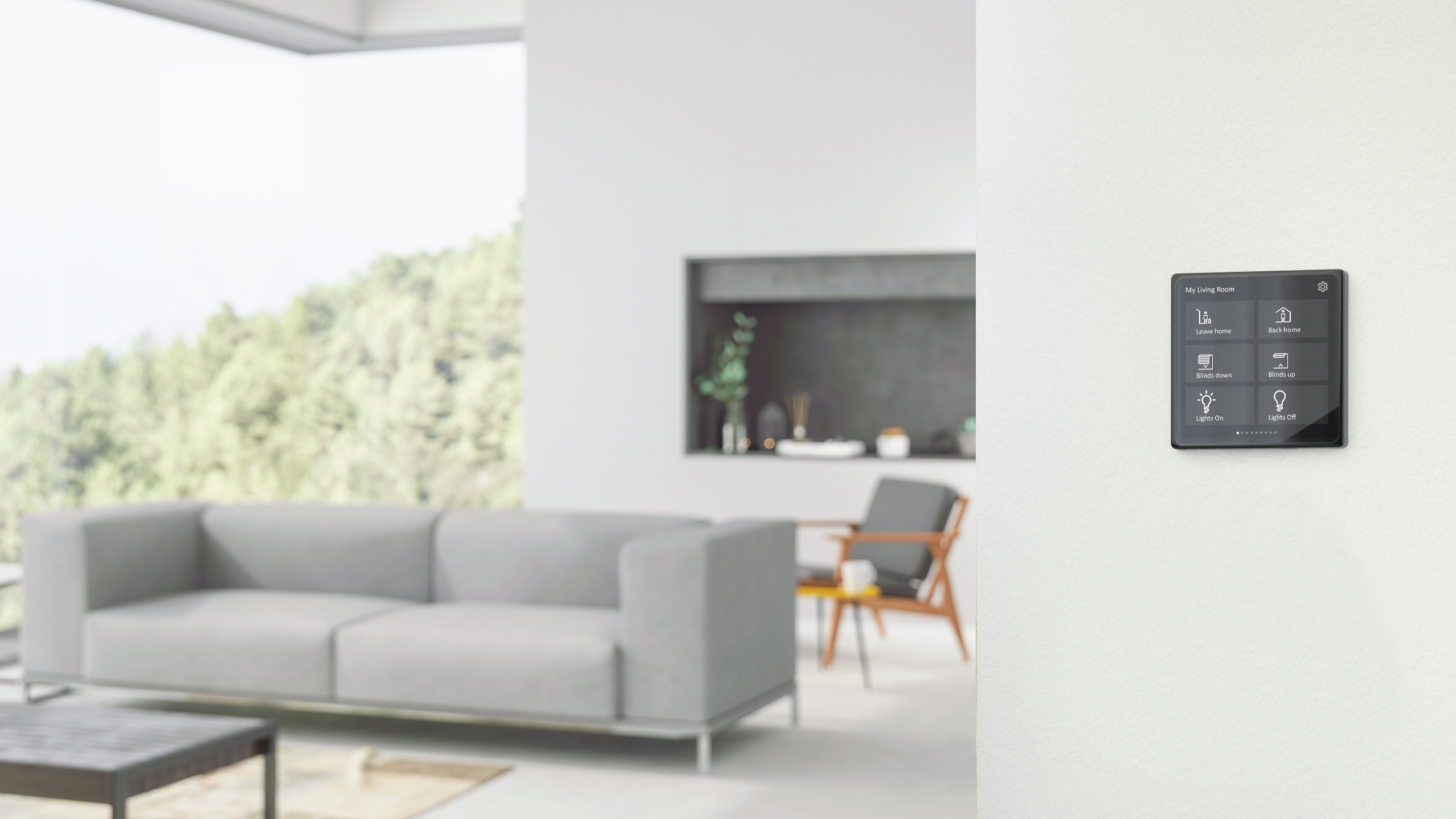 Kosketusnäytössä on jopa yhdeksän sivua, joiden välillä liikutaan yksinkertaisesti pyyhkäisemällä oikealle tai vasemmalle. Sivuihin voidaan lisätä toiminto-widgetejä, joilla voidaan seurata esimerkiksi energiankulutusta ja ilmanlaatua. Niiden avulla pystytään myös säätämään valaistusta, verhoja, ilmanvaihtoa, lämmitystä ja paljon muuta.
