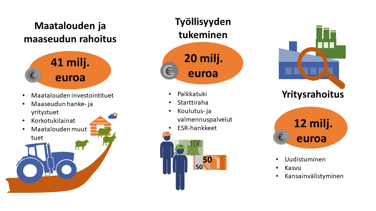 Pohjanmaan ELY-keskus on myöntänyt yli 41 miljoonaa maaseudun ja maatalouden tukemiseen Pohjanmaalla ja Keski-Pohjanmaalla vuonna 2023. Yritystukien haku alkoi vasta kesällä uuden rahoituskauden vuoksi ja tukien myöntäminen marraskuussa. Tukea myönnettiin erityisesti maaseutuyritysten investointeihin elintarvikealalla, valmistavan teollisuuden ja uusiutuvan energian aloilla. Maatalouden investointitukea haettiin runsaasti. Eniten rahoitusta myönnettiin energiainvestointeihin, eläinten hyvinvointiin ja bioturvallisuusinvestointeihin. Hanketukia ei myönnetty lainkaan, koska uuden rahoituskauden alku viivästyi. Kiinnostus hankerahoitusta kohtaan on kuitenkin runsasta. Kehittämishankkeilla lisätään esim. alkutuottajien talous- ja digiosaamista sekä edistetään yritysten sukupolvenvaihdoksia ja kansainvälistymistä.