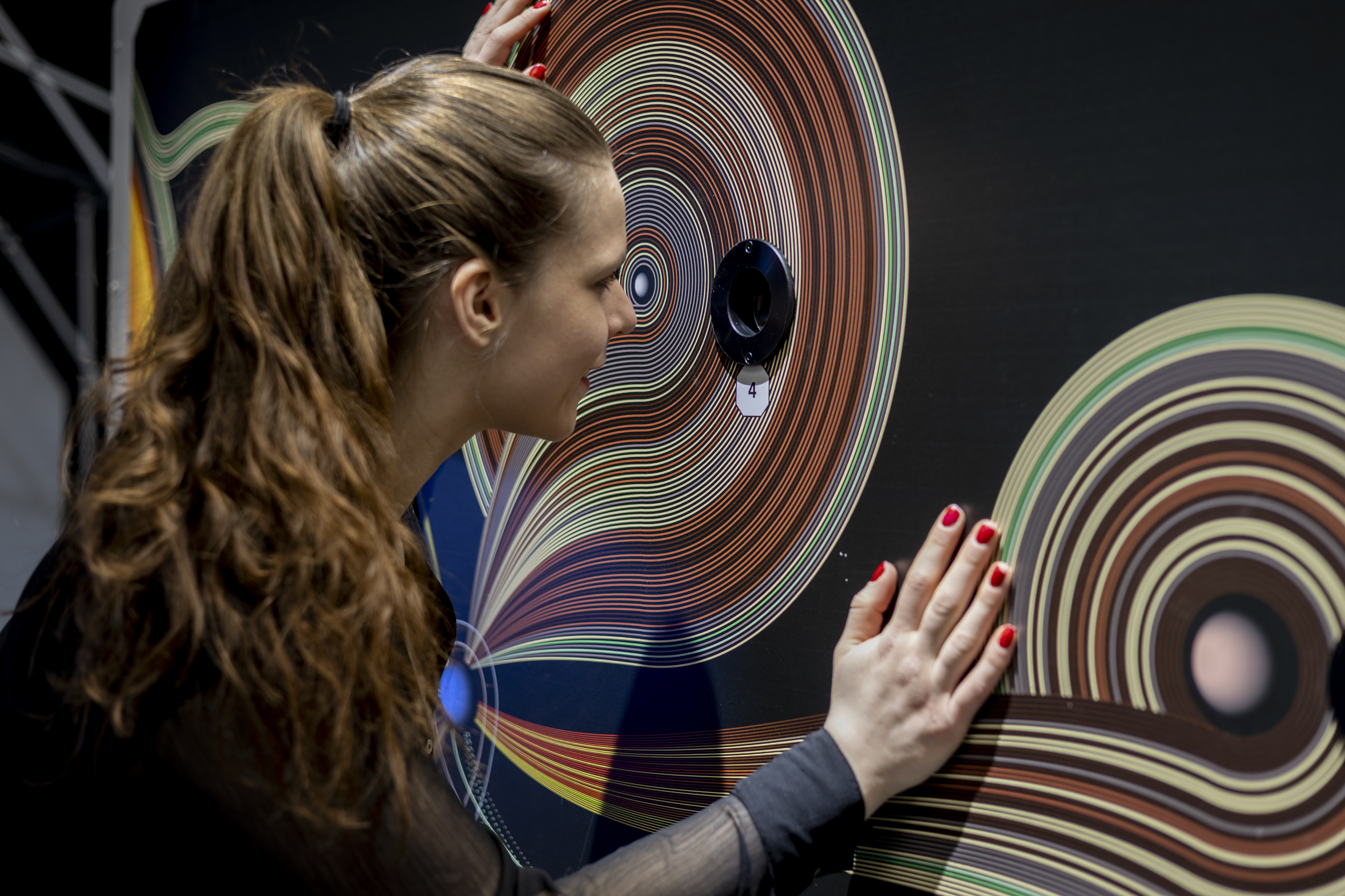 Exhibition visitors enter a future space station in Earth’s orbit, where they become space professionals through narrative missions and games. Visitors can protect our planet and explore the universe as members of six different teams of space professionals: Protectors of Earth, Research pioneers, Masters of negotiation, Wellness creators, Technologists, and Seers of the future. At the end of their visit, visitors can pose for a photograph as a space professional in the team of their choice.