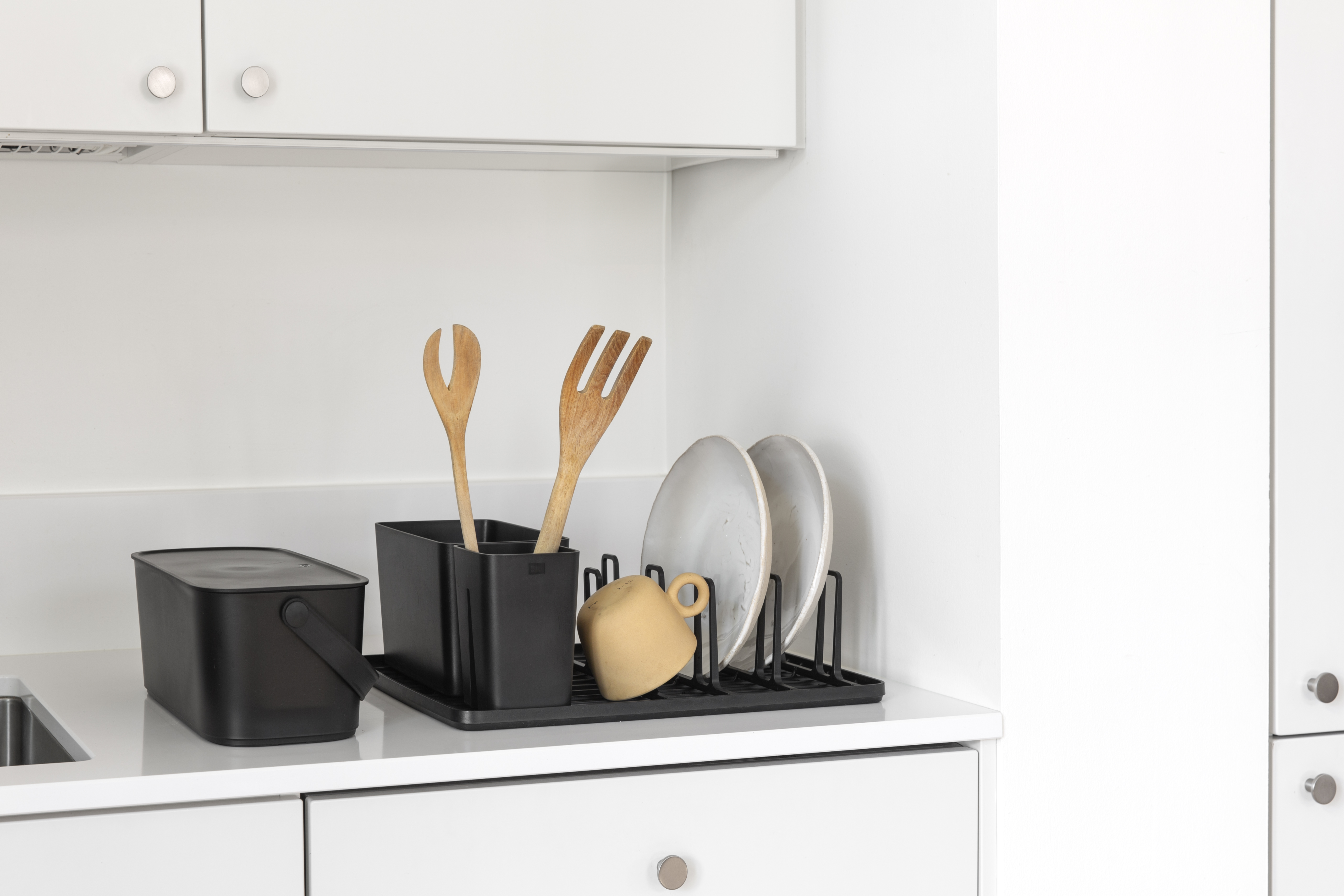 Uusi keittiön järjestelyä helpottava tyylikäs tuoteperhe koostuu kolmesta tuotteesta: Aterinteline, Kuivausalusta ja Tiskipöydän järjestäjä. Keittiössä arjen askareet sujuvat huomattavasti vaivattomammin, kun jokaisella esineellä on oma paikkansa.