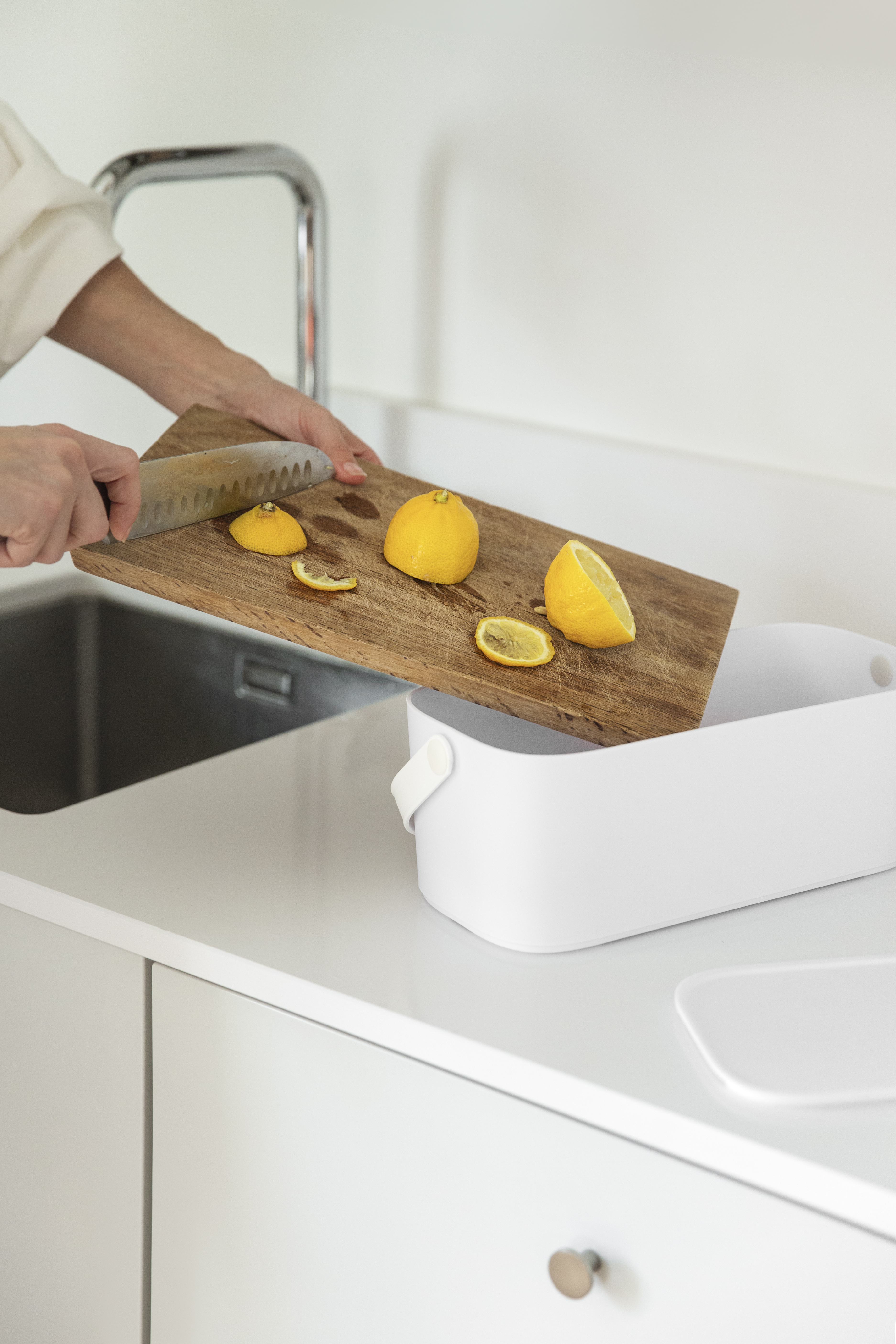 Keittiön järjestäjien settiä täydentää erinomaisesti niin ikään vuoden alussa julkaistu uusi Biojäteastia. Värivaihtoehtoina ovat musta ja valkoinen. Biojäteastia on kompakti, esimerkiksi keittiön tasolle sopiva biojätteen keräämiseen ja lajitteluun tarkoitettu astia. Itse astia on valmistettu kokonaan kierrätysmuovista, kannen muovista kierrätettyä on 50 %. Kannen avulla astiaan voi kaataa vaikkapa hedelmien ja vihannesten kuoret sekä pitää mahdolliset hajut kurissa.