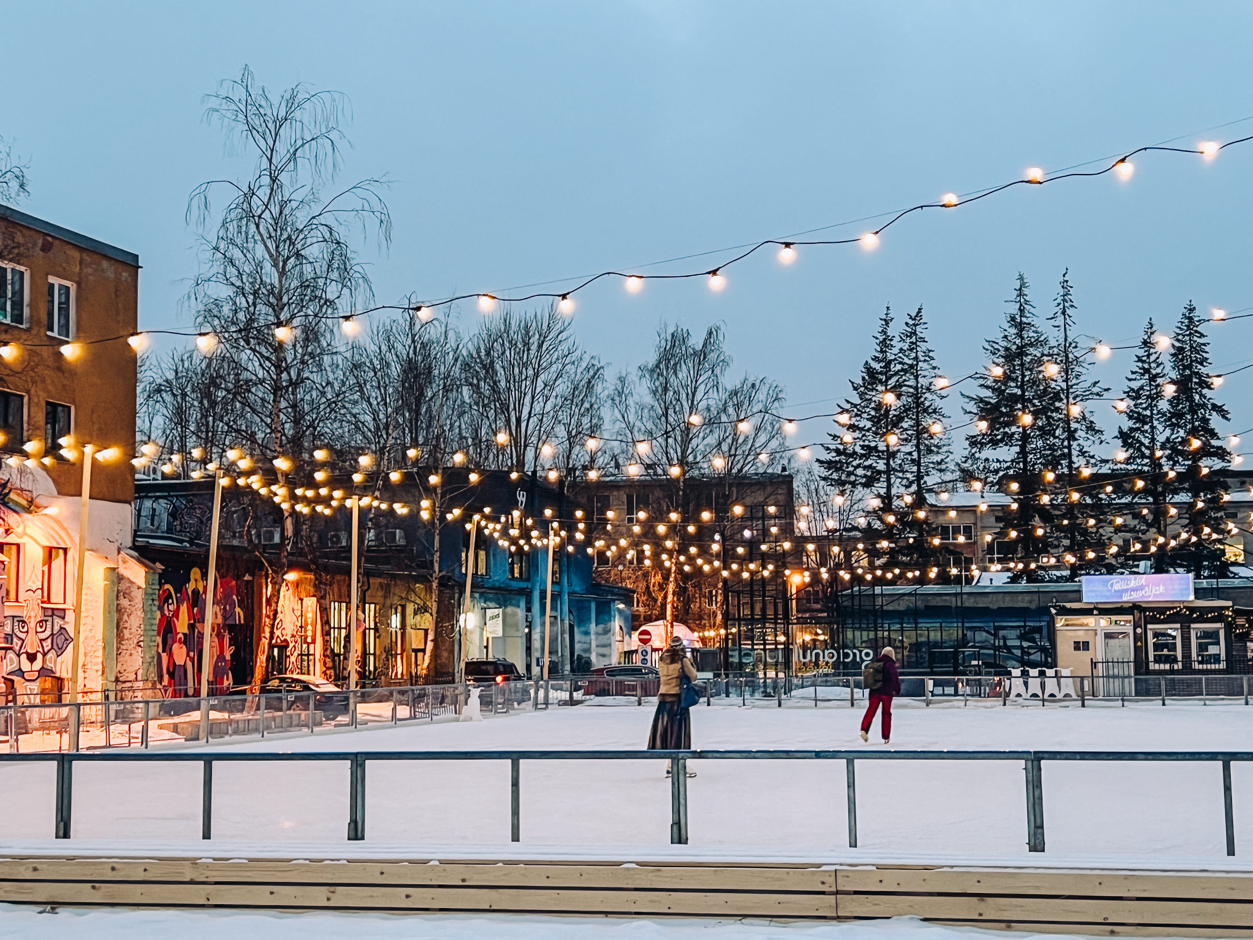 Tallinnan vanhankaupungin luistelukenttä (Vanalinna uisupark) sopii tunnelmalliseen, mieleenjäävään luisteluhetkeen. Nigulisten museon kupeessa sijaitsevalta kentältä on hienot maisemat vanhaankaupunkiin. Paikan päältä voi vuokrata varusteet ja kuuman kaakaon saa kentän kahvilasta. Luistelun jälkeen kannattaa nousta hissillä Nigulisten museon torniin ihailemaan kaupunkia lintuperspektiivistä.