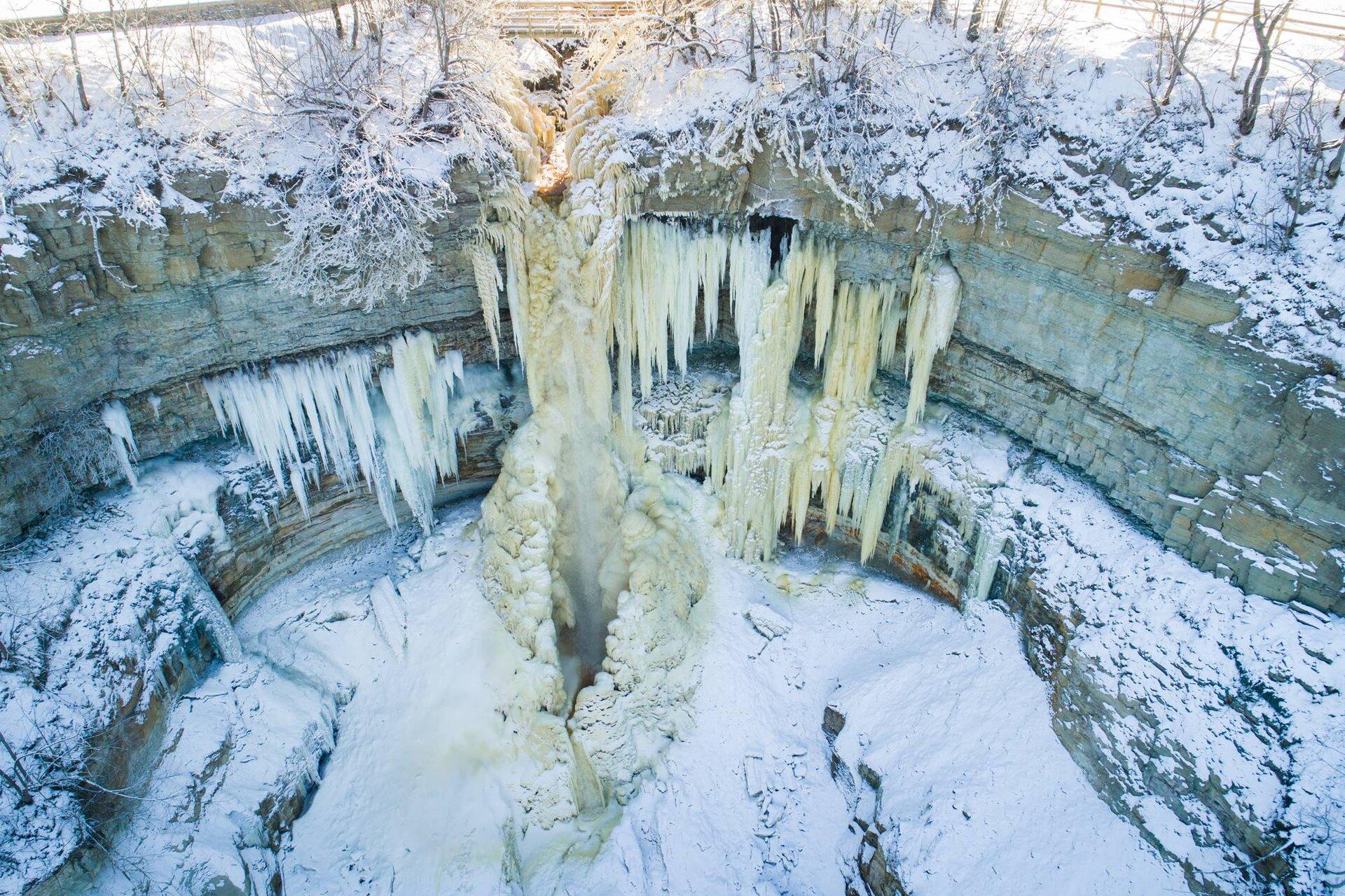 Valasten putous on yksi Viron suosituimpia luontonähtävyyksiä ja upea ilmestys talvellakin. Pakkanen ja tuulet muovaavat yli 30 metriä korkeasta putouksesta jäisen taideteoksen. Valasten näköalapaikan naapurissa on myös kahvila, jossa voi hörpätä kuumaa juotavaa.