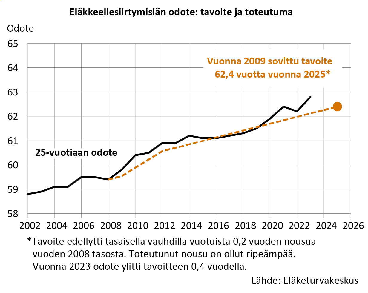 Eläkkeellesiirtymisikä ylitti tavoitteen